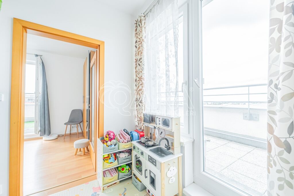 Ve výhradním zastoupení majitele nabízíme k prodeji moderní byt 2+kk s prostornou terasou a parkovacím stáním, který je součástí rezidenčního projektu Nové Letňany od CENTRAL GROUP. Tento byt si okamžitě získá každého, kdo hledá bydlení plné světla, s volným výhledem a naprostým soukromím – sem vám nikdo do oken nekouká. Díky umístění v 10. posledním nadzemním podlaží novostavby z roku 2014 je připraven k okamžitému nastěhování.