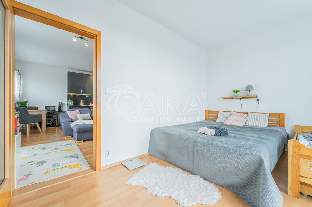 Podlahy jsou řešeny prakticky dlažba v koupelně a na chodbě, v obytných místnostech pak plovoucí podlaha. Díky moderní stavbě a umístění v klidné části Letňan je tato nabídka vhodná jak k vlastnímu bydlení, tak i jako investice.