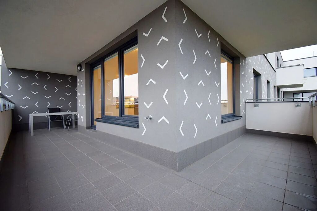 Prostorný a moderní 2+kk se zastřešenou terasou v novostavbě z roku 2019 atraktivní lokality komplexu Malý Háj. Do obýváku s moderní, plně vybavenou kuchyňskou linkou je možné dodat bílou sestavu pod TV a rozkládací sedačku. Do ložnice, vybavené prostornou vestavnou šatní skříní, je možné dodat zcela novou manželskou postel včetně lamel. Další úložné prostory se nacházejí v předsíni a komoře. Koupelna s vanou se sprchovou zástěnou je společná s WC. Možnost pronájmu garážového stání v přízemí vedlejšího domu za 1.800 Kč/měs. Velkou předností je blízkost dvou nákupních center RETAIL PARK a EUROPARK s veškerou občanskou vybavenosti. Výborná dopravní dostupnost na Pražský okruh i ke stanici metra Depo Hostivař. K nastěhování od 1. 12. 2025.