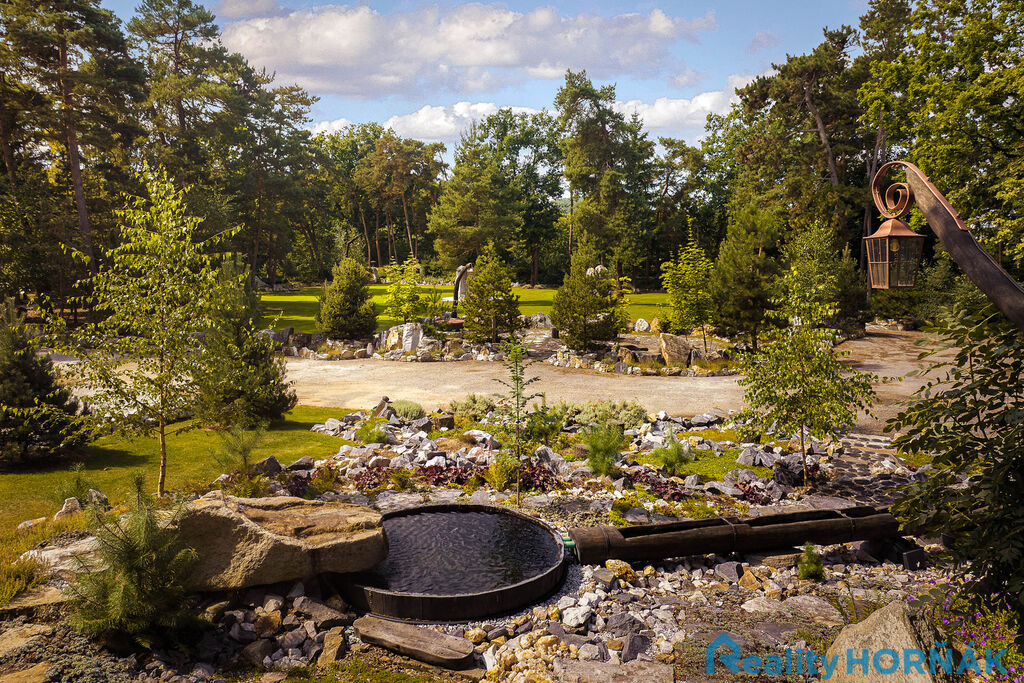 Soubor parcel o celkové výměře 17.169 m2 leží „na samotě“ mimo zastavěnou část obce a územním plánem je včleněn do kategorie F – plochy smíšené, obytné. Současný majitel pojal nabízené území jako výzvu k uměleckému pojednání. V naprostém souladu s přírodou zde vytvořil jedinečné místo, kde má každý kámen, každý strom, každý kousek dřeviny, či květeny své pečlivě vybrané místo. Unikátně zde vytvořil několik účelově odlišných zón, které však dohromady působí jako jedinečný, nezaměnitelný celek. Jen ten zbytek původní stavby jakoby sem nepatřil, jeho místo čeká na stavbu, která území dotvoří a novému majiteli poskytne netradiční, nadstandardní, úchvatné bydlení (na "první dobrou" přichází v úvahu například roubenka s velkými prosklenými plochami, ale třeba to nakonec bude úplně jinak :-)