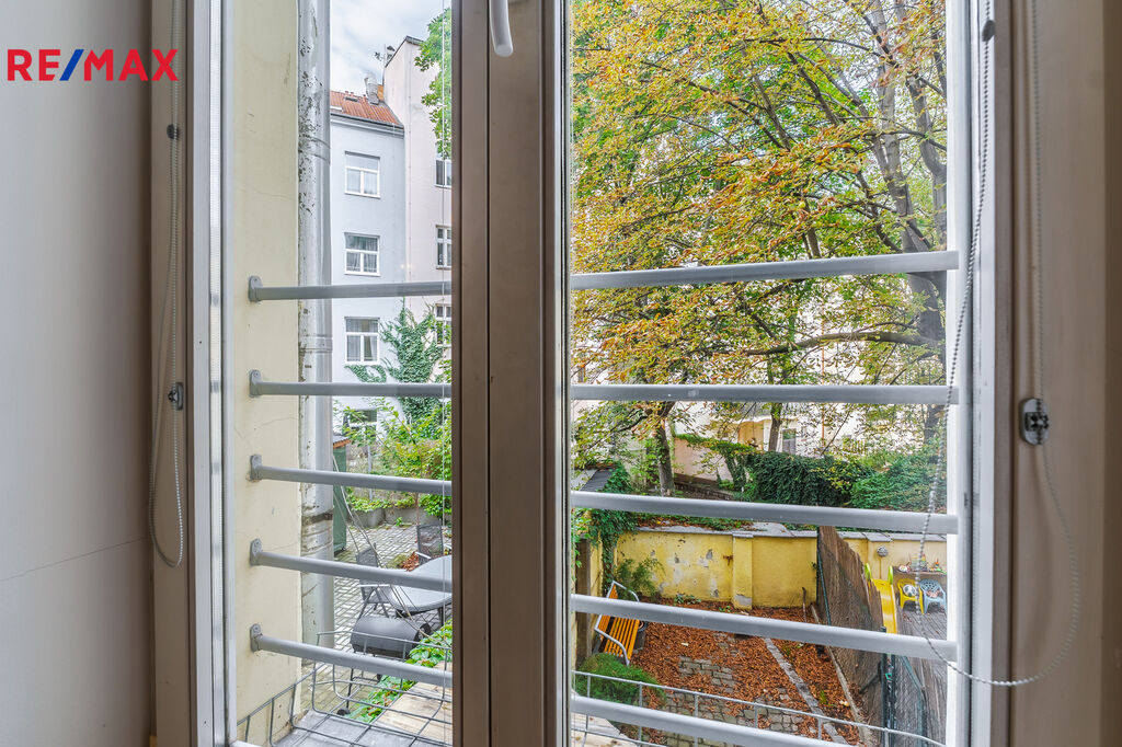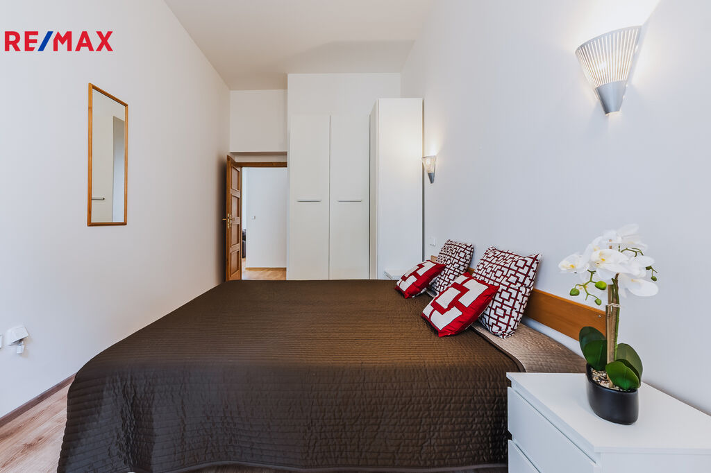 • prostorná ložnice s úložnými prostory (okno do klidného vnitrobloku),