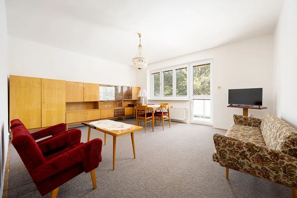 Byt má dispozici 3+1 s užitnou plochou 79 m2, dvěma lodžiemi, balkonem a samostatnou toaletou. Je velmi pečlivě udržován a zařízen v původním retro stylu. Orientace bytu je jiho-východní. Obě ložnice a kuchyně jsou neprůchozí.