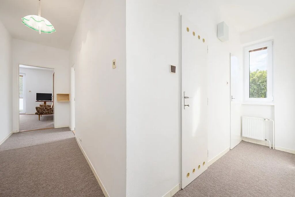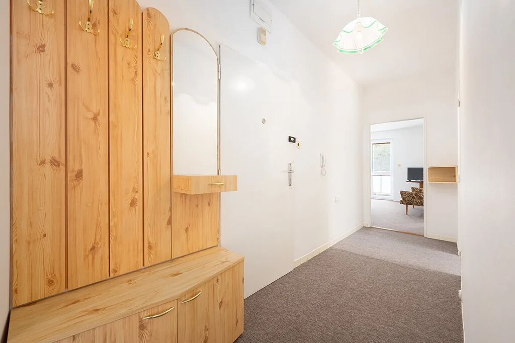 V obývacím pokoji a chodbě je položen nový koberec. V ložnicích jsou krásné dřevěné parkety.