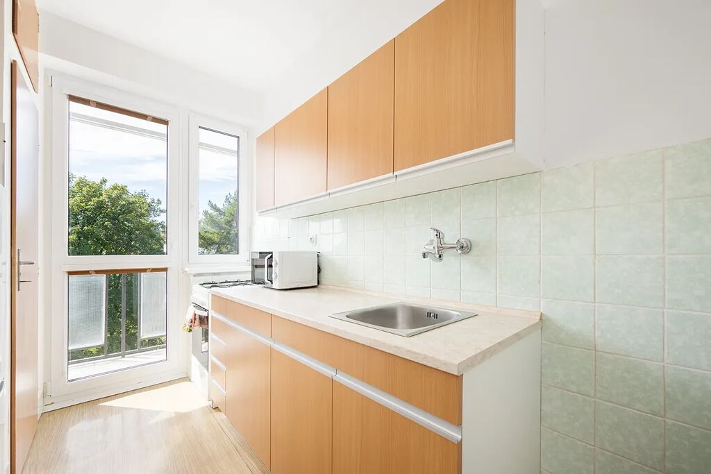 Kuchyně je vybavena základními spotřebiči, mikrovlnná trouba a lednice jsou nové.