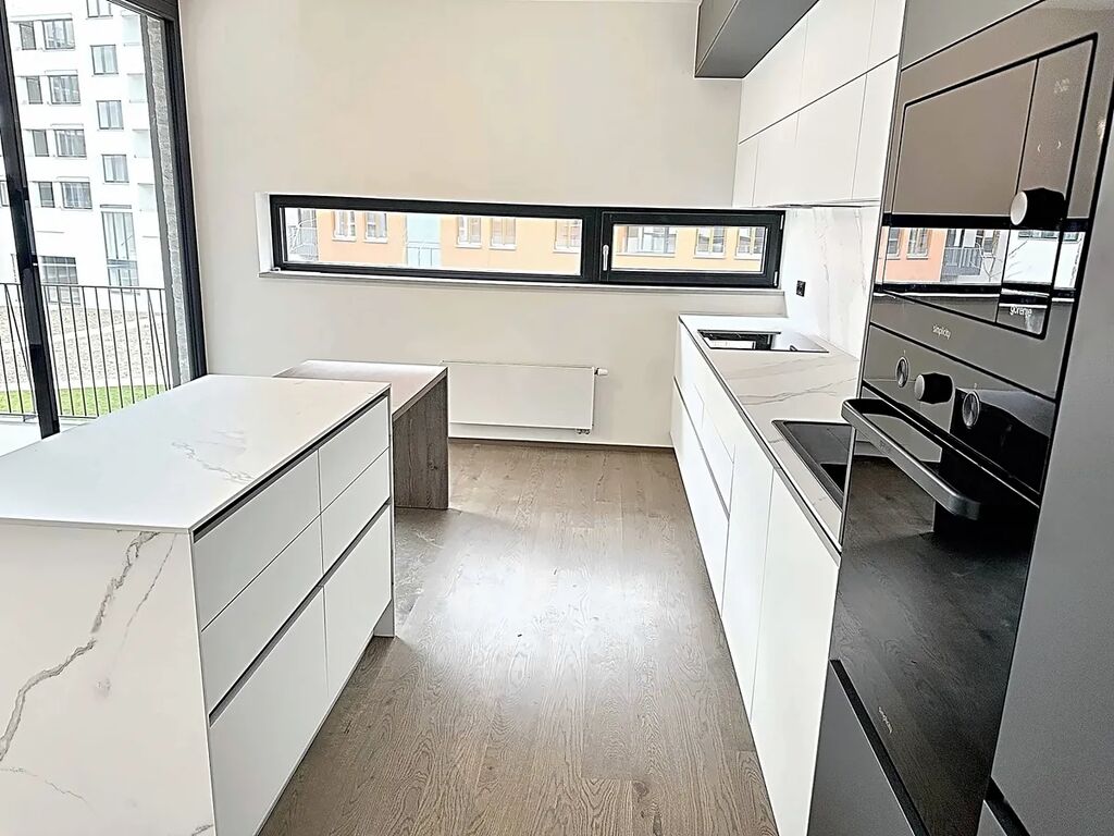 Velká okna zajišťují dostatek přirozeného světla a vytvářejí příjemný a prostorný interiér. Centrální vytápění a rekuperace zajistí efektivní a pohodlné bydlení. K pronájmu náleží také jedno parkovací stání a sklep. Tento moderní byt nenabízí pouze elegantní bydlení, ale také výhody vynikající lokality.
