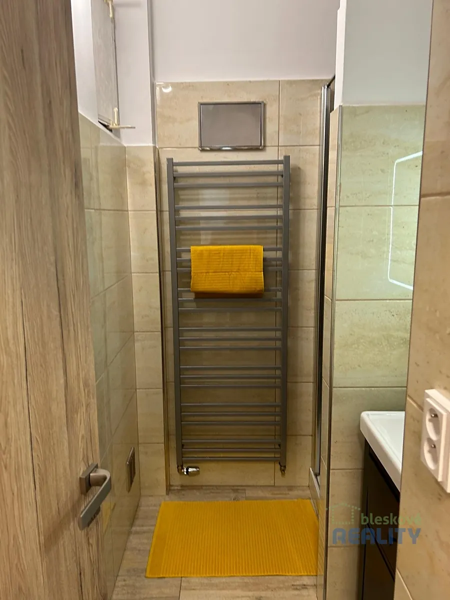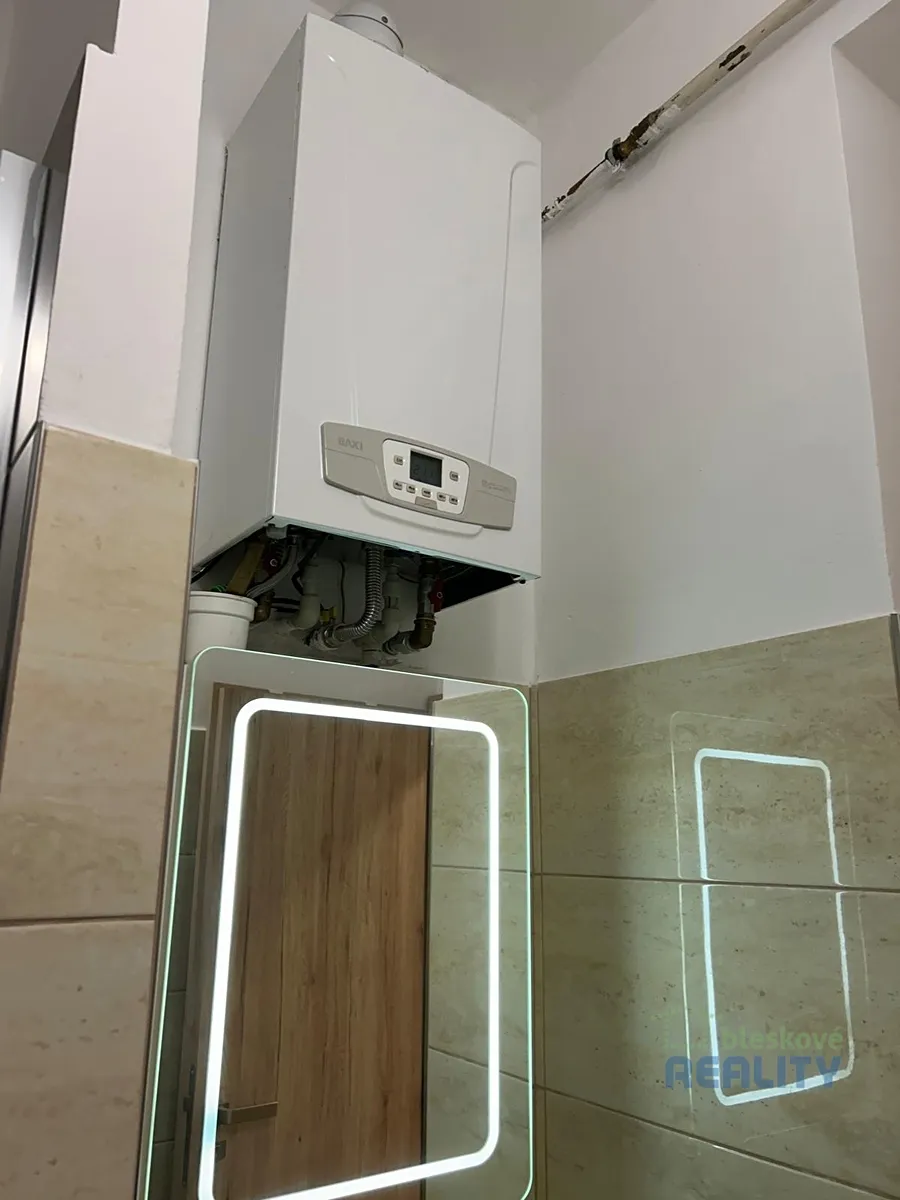 Byt je plně vybavený – k dispozici je nábytek (velká šatní skříň, kuchyňský stůl, židle, křeslo, sedačka TV, postel, pracovní stůl, židle, knihovna - případně dle domluvy), lednice s mrazákem, pračka, myčka, sporák a trouba. Vytápění zajišťuje moderní kondenzační kotel s nízkými provozními náklady.