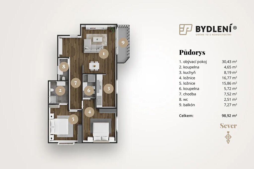 Realitní kancelář 3P Bydlení nabízí ve výhradním zastoupení k prodeji byt v osobním vlastnictví, 3+kk o rozloze 101,04 m² v Rezidenci Plaza – projektu, který kombinuje rezidenční bydlení s prvky hotelového servisu.