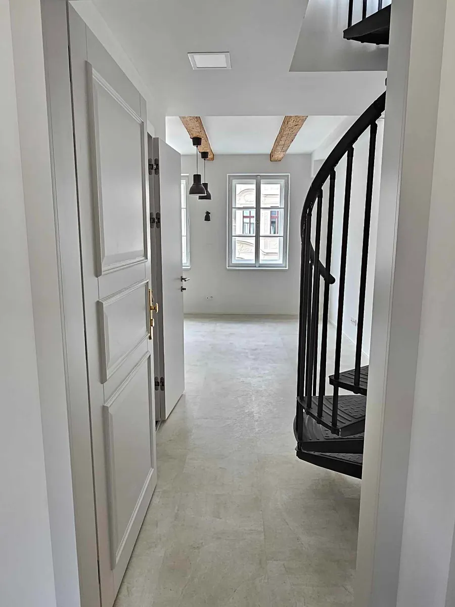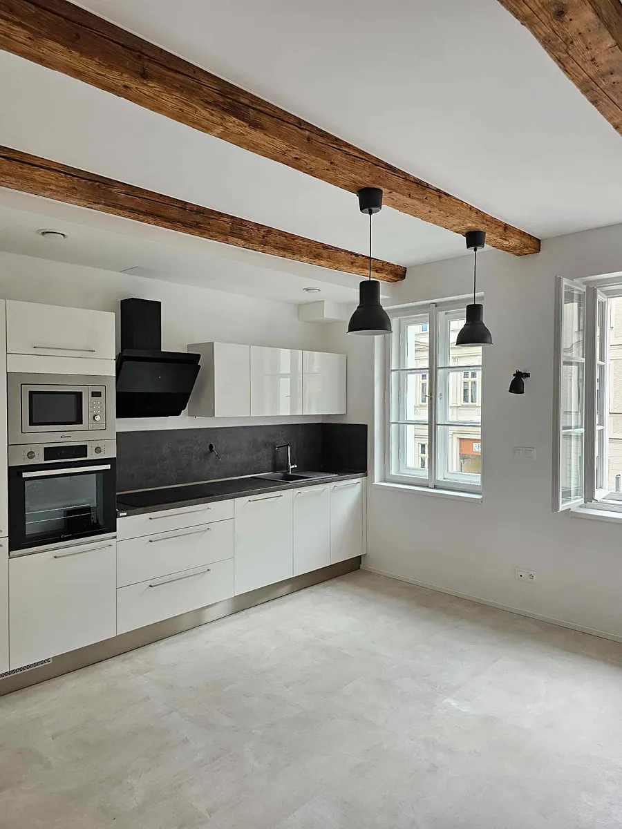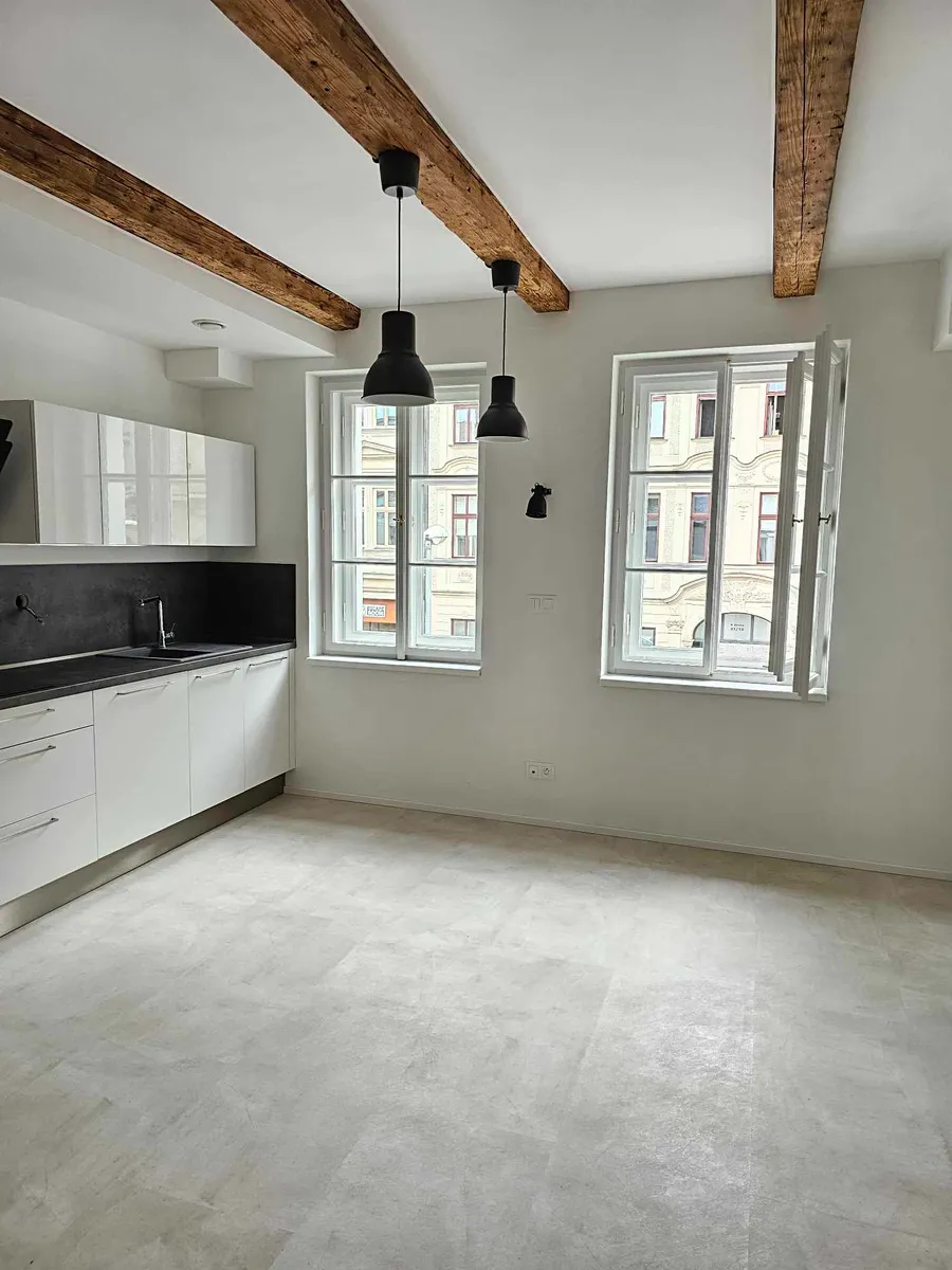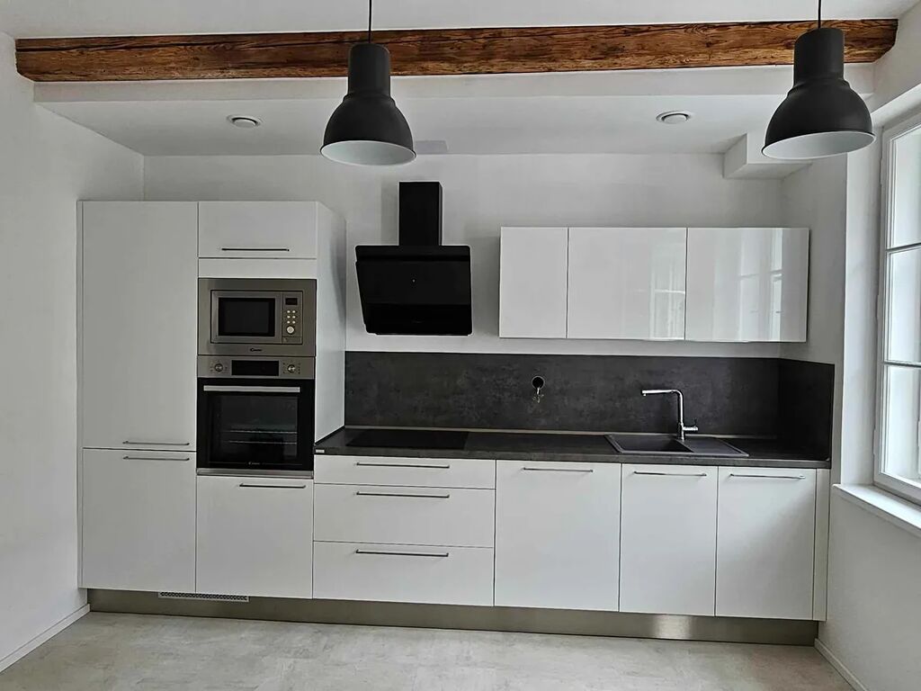 Nabízím zprostředkování pronájmu nového stylového mezonetového bytu 2+kk v centru Liberce. Byt je moderní, světlý o velkosti 50m2 a nachází se ve druhém patře historického (kompletně zrekonstruovaného) domu, který je součástí areálu bývalých tiskáren - bytový projekt Tiskárna Kristiánov. Dům má výbornou polohu vedle zámeckého parku, parku Clam-Gallasů a Liebiegovy vily, téměř v centru Liberce. Dispozice bytu – předsíň, koupelna s WC, dále obytný prostor s plně vybavenou kuchyní, ze kterého vedou točité schody do podkroví, kde je prostor na ložnici a případně i pracovní kout. Byt má podlahové topení, okna s trojitými skly, rekuperaci.