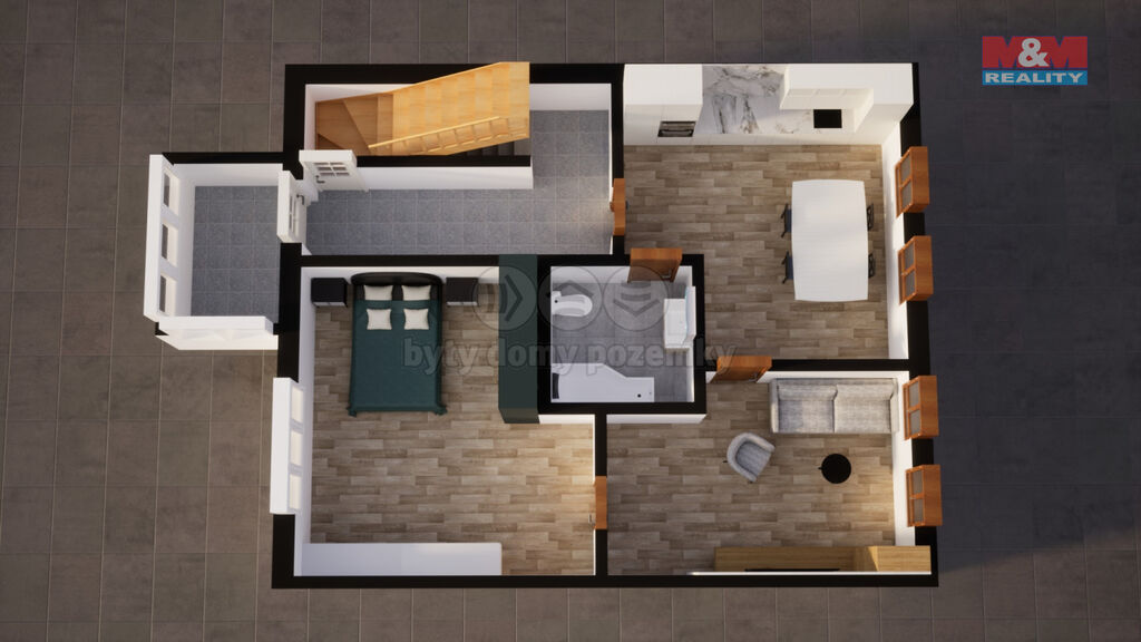 Součástí nabídky je i útulná zahrádka za domem s kůlnou na nářadí. Nechybí ani prostorný sklep s dostatkem úložného prostoru.
