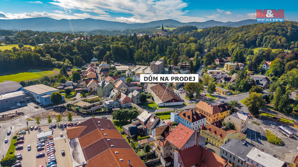 Nemovitost se nachází v samém srdci města, hned naproti hokejové haly. Strategické umístění domu zaručuje veškerou občanskou vybavenost i služby v pěší vzdálenosti. To samé platí i pro sportovní či společenské vyžití. I přes to, že dům stojí v centru města, jde o hezkou a klidnou lokalitu.