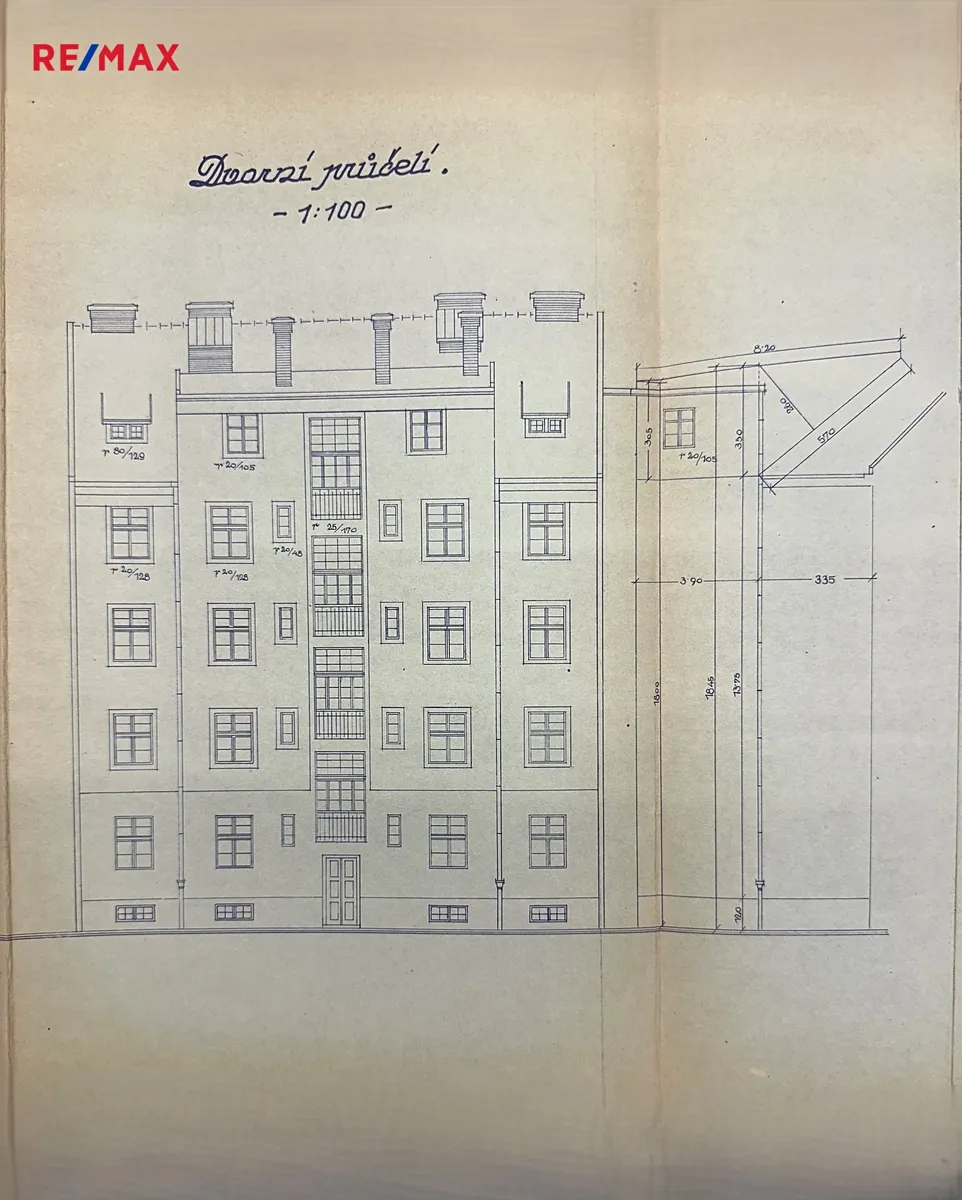 - 4 podlaží s byty, sklepy a půdním prostorem