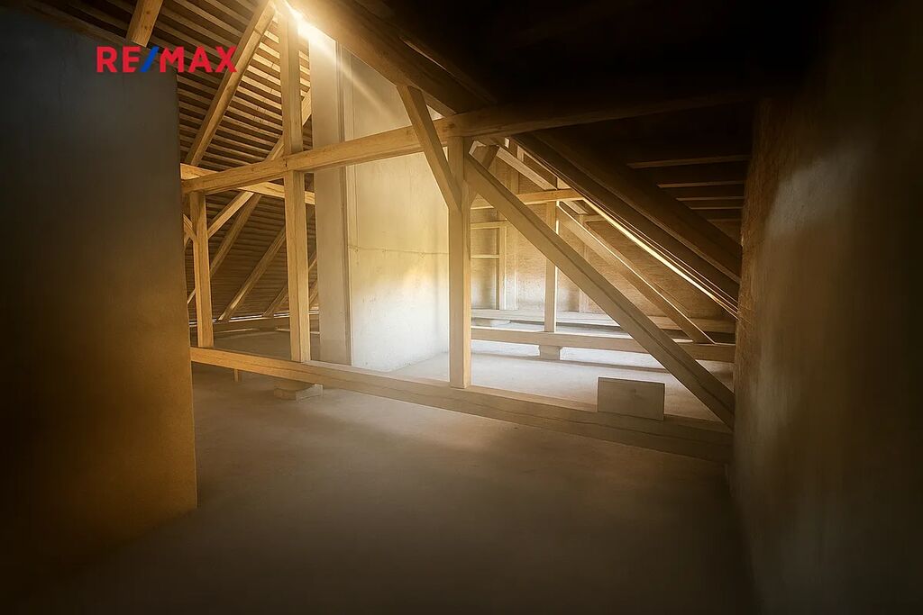 Součástí objektu je půda (původně s bytem se sociálním zázemím, dnes využívaná jako sušárna) a prostorné sklepy – oboje je vyklizeno a připraveno k dalšímu využití.