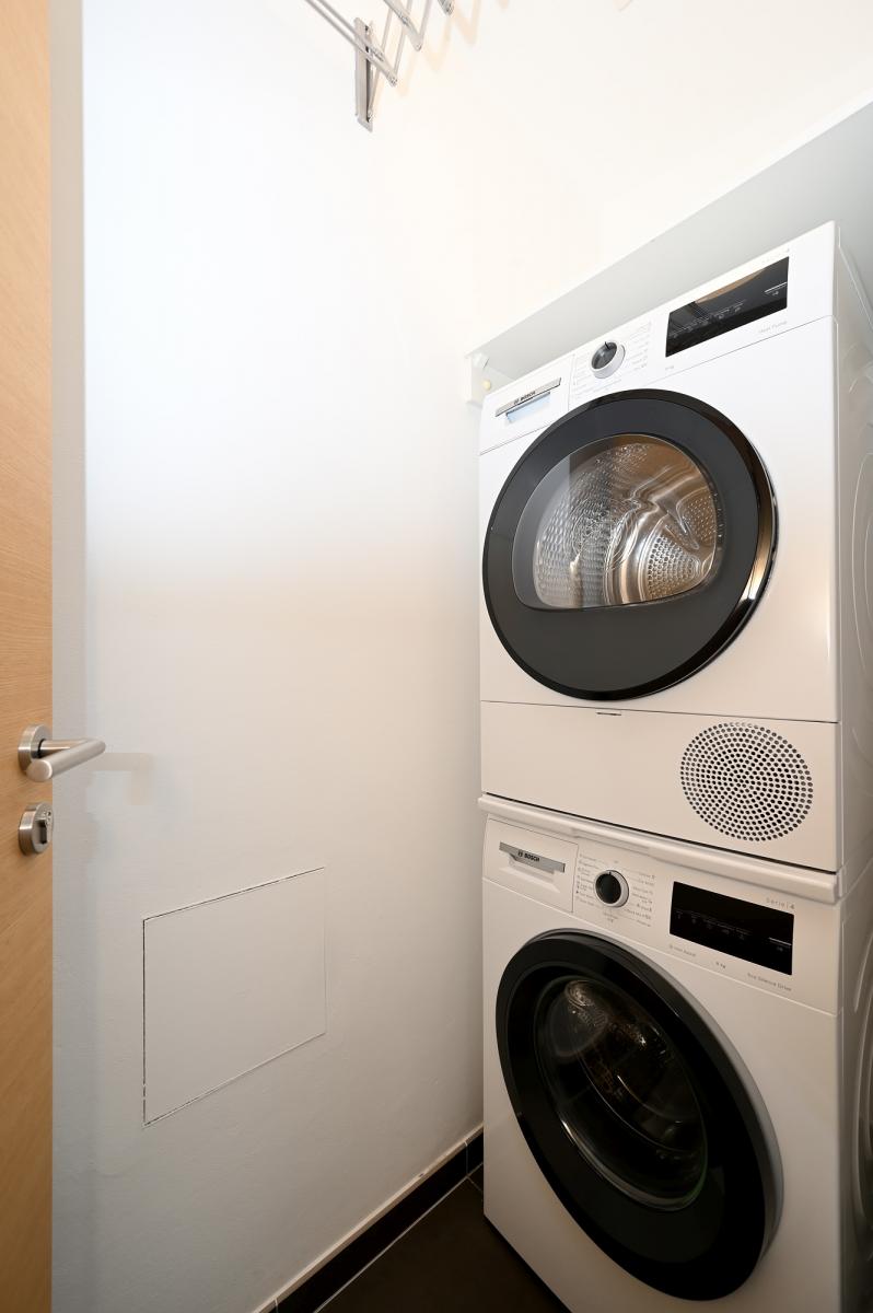 Jižní orientace prostorného a velmi tichého bytu v klidném domě s recepcí 24/7. Ve všech oknech vnější elektrické rolety. Dřevěné podlahy. Zcela nové spotřebiče: pračka, sušička, lednice s mrazákem. Tři minuty pěšky na metro. V okolí krásné parky.