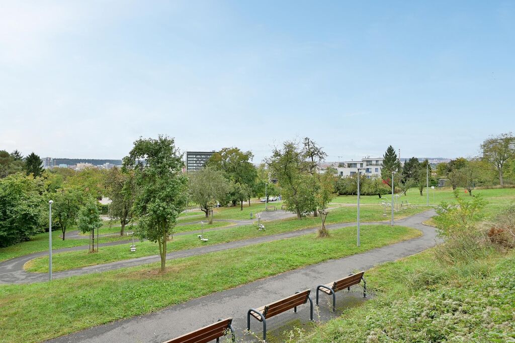 V okolí je spousta zeleně, kousek od domu je autobusová zastávka Kuchyňka. Metro Nádraží Holešovice 4 min autobusem.