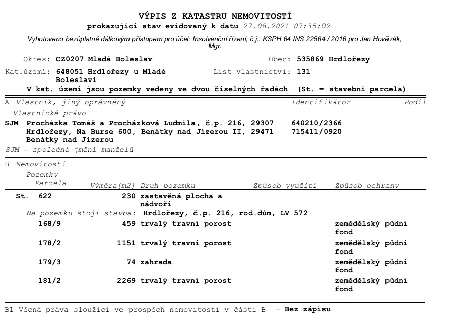 • Na nemovitosti nevázne žádná nájemní smlouva, dům je i nadále obýván a řádně udržován dlužníkem, který poskytuje dobrou součinnost.