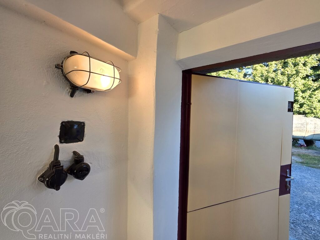 Nemovitost je po zdařilé kompletní rekonstrukci, je nově vyštukována a vymalována. Nový kvalitní nájezd. Původní vrata v perfektní kondici nově vybroušena, nalakována a pečlivě zateplena. Betonová podlaha v super stavu a je také původní.