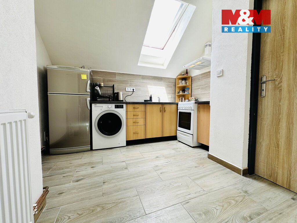 Byt se skládá z prostorné obytné místnosti, samostatné kuchyně a koupelny.