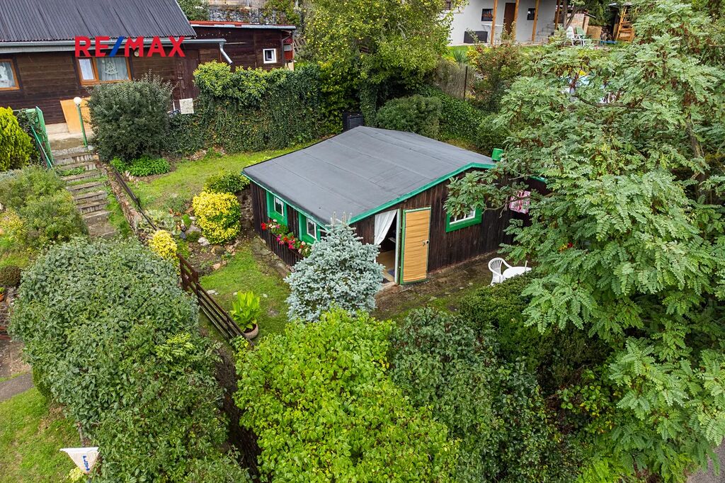 Chata se zahradou se prodává včetně veškerého vybavení a je na vlastním pozemku.