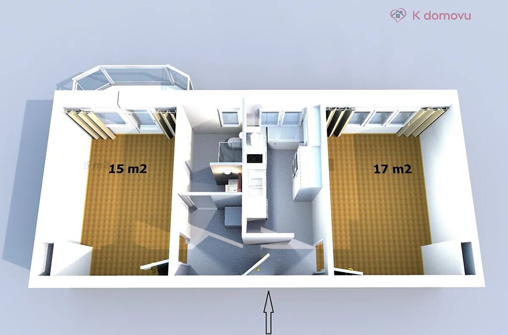 Podnájem bytové jednotky o dispozici 2+1 s užitnou plochou 49 m² a lodžií 4m2, která se nachází ve třetím podlaží cihlového, čtyřpodlažního domu.