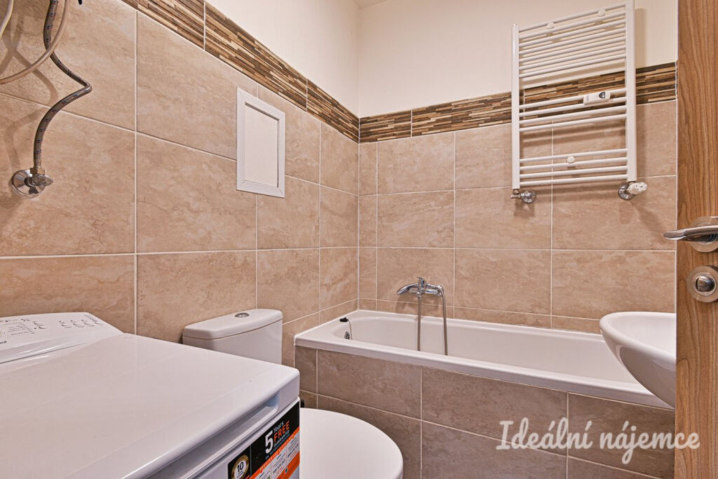 Byt je plně vybavený dle fotografií. Kuchyňský kout disponuje varnou deskou, troubou a lednicí. Obytný prostor je zařízen postelí, stolem s židlemi a šatní skříní. Koupelna je vybavena vanou, pračkou, umyvadlem a toaletou.