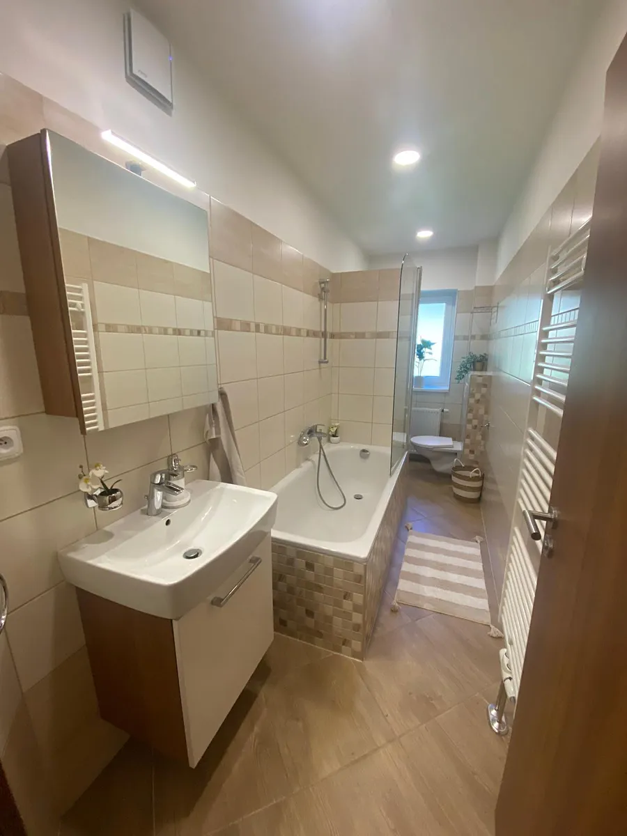 Námi nabízený byt 2+1 je umístěn v 2.NP /ze 3.NP, prošel kompletní rekonstrukcí (bezpečnostní vstupní dveře včetně bezpečnostního kování, vnitřní dveře zn. Sapeli, rozvody vody a odpady v plastu, elektroinstalace se stropním podsvícením v pokoji, ústřední topení včetně elektrokotle a bojleru obojí zn. Protherm, vnitřní omítky, plastová okna s dvojskly + sítě proti hmyzu, podlahy včetně krytin, koupelnová sanita, instalována kuchyňská linka s elektrospotřebiči zn. Siemens - myčka, varná deska, horkovzdušná trouba, digestoř zn. Franke, nerezový dřez). Byt je řešen ve velkorysém otevřeném prostoru s důrazem na vzdušnost a jednoduchou linii. Dřevo a bílá! I tak málo stačí k vytvoření moderního komfortního bydlení. Byt je vkusný, elegantní, s příjemnou energií, vše na sebe harmonicky navazuje.