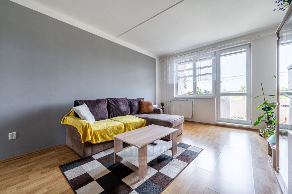 Dispozice bytu: zádveří s předsíňovou stěnou a šatní skříní, zděné jádro, prostorná koupelna s vanou, umyvadlem, samostatné WC, kuchyň s linkou a jídelním prostorem, prostorná středová hala s místem pro šatní skříně, využitelná i jako jídelna, nebo pracovna, samostatný pokoj, obývací pokoj s lodžií do parkového prostranství mezi domy, větší prosvětlená ložnice. K bytu náleží sklepní kóje a možnost užívání všech společných prostor v domě,