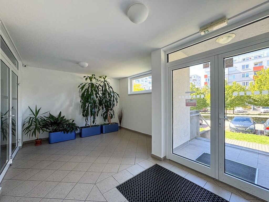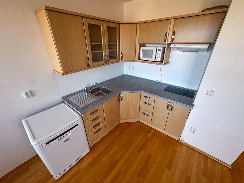 Dobře udržovaný, dispozičně a hlavně uživatelsky moc příjemně vymyšlený byt může být již brzy Vaším domovem. Byt má dispozici 2+kk, 53m2 + 3m2 balkon s výhledem na východ. Součástí pronájmu je také garážové stání v 1.PP. Byt se nachází ve 4.NP a skládá se ze zádveří a chodby, komory s úložnými prostory, samostatného WC, koupelny s vanou, obývacího pokoje s kuchyňským koutem (dvě plotny, bez trouby) a ložnice. Na balkon je vstup z obývacího pokoje i ložnice.