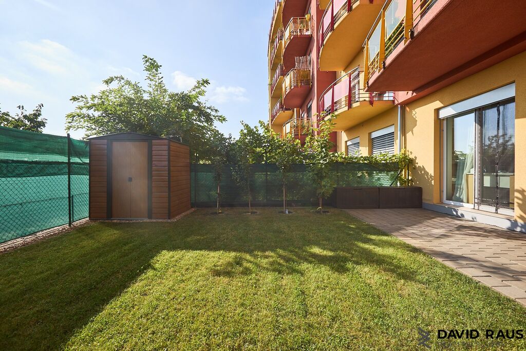 K bytu náleží terasa se zahrádkou (59,60 m²) , sklepní kóje a vlastní parkovací místo přímo před domem.