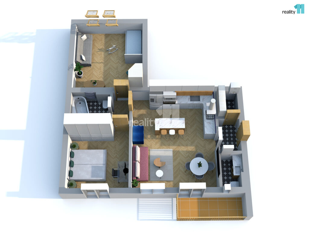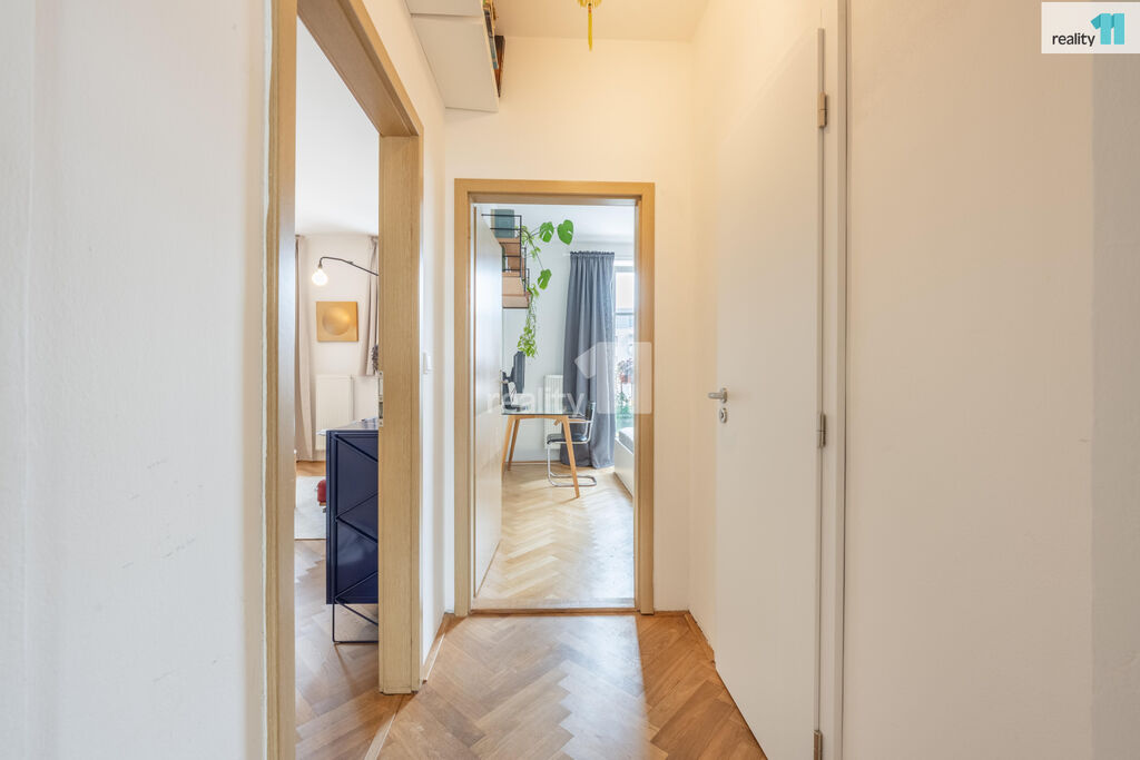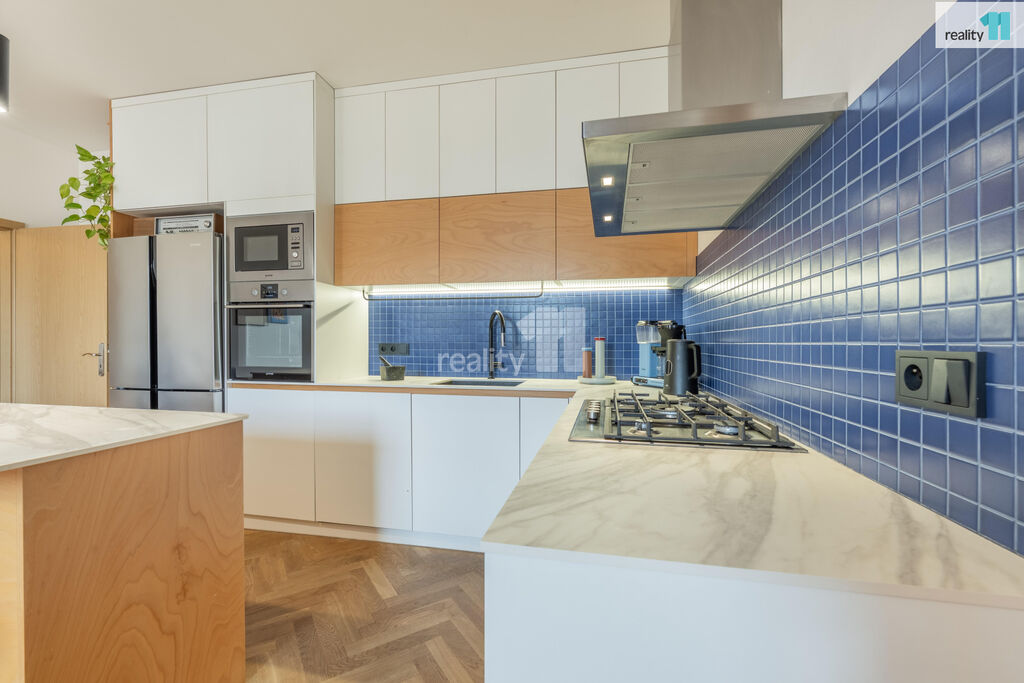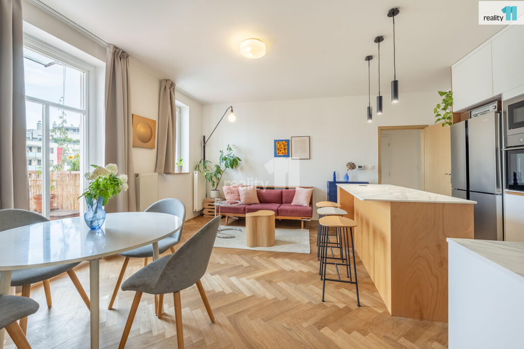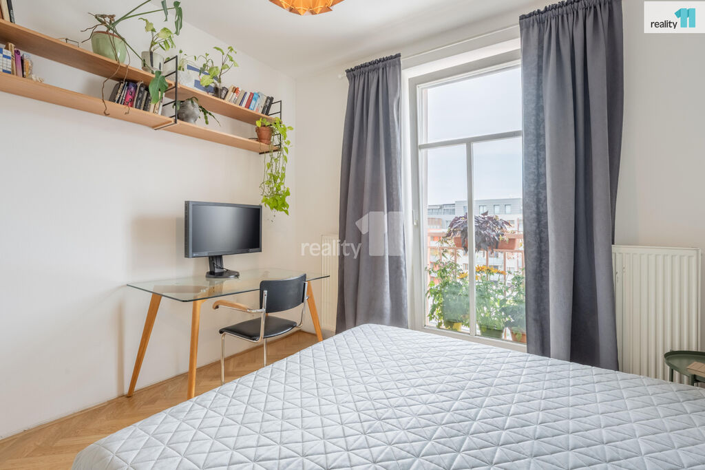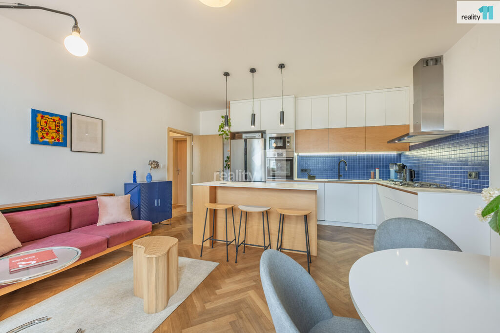 Byt 3+kk o celkové užitné ploše 74 m², z toho 4 m² balkón, který nabízí moderní vzhled, pohodlí města i možnost relaxu v zeleni. S praktickou dispozicí s neprůchozími pokoji. V r.2021 byl zrekonstruován, o nový příjemný a promyšlený design se postaralo architektonické studio. Byt dostal kompletně na míru vyrobenou novou kuchyň, velkou koupelnu, malou koupelnu a předsíň. Vznikl tak krásný, vzdušný, sladěný prostor, kde se prolínají stejné dekory. Dominantním motivem je kombinace bílé, šedé s bukovou překližkou.
