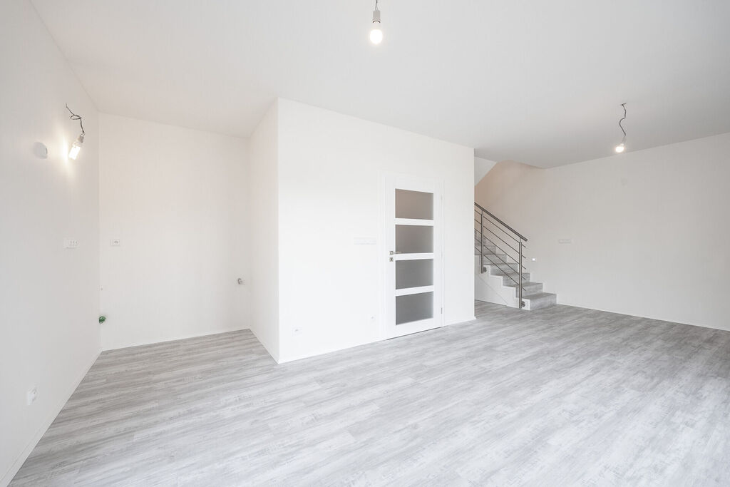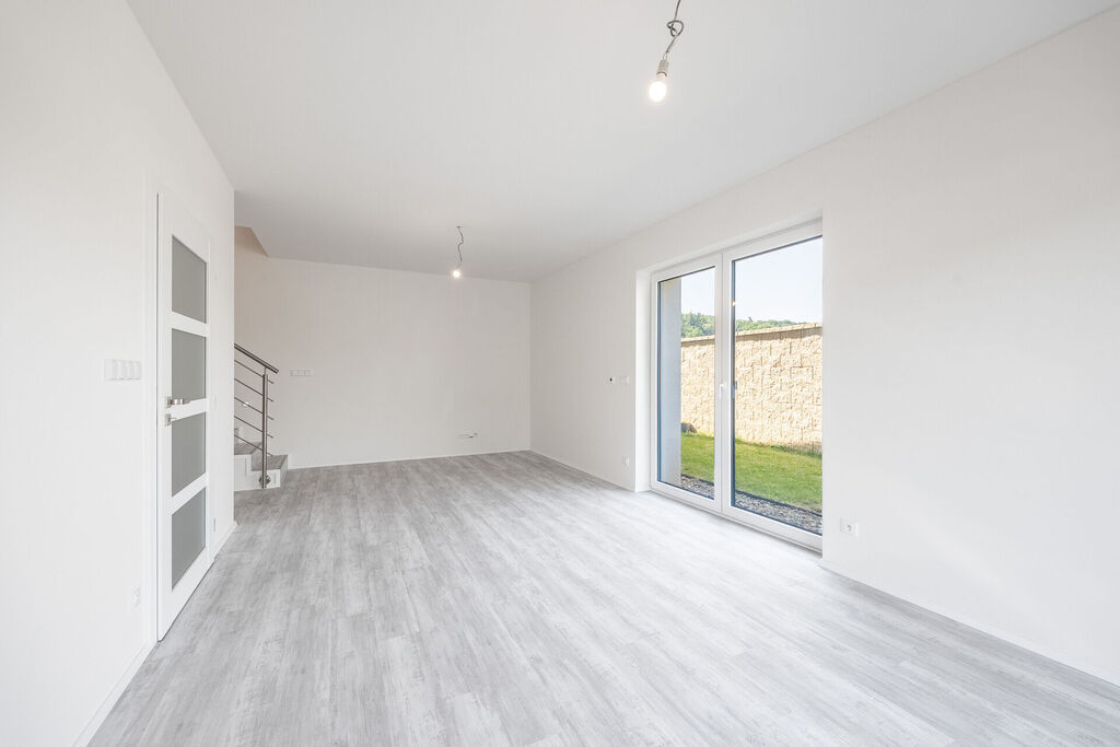 Ve spodní části bytu vás přivítá zádveří, které vás zavede do prostorného obývacího pokoje s místem pro kuchyňskou linku a přímým vstupem na vaši vlastní zahrádku, kde si můžete užívat slunečné dny a grilování s rodinou.