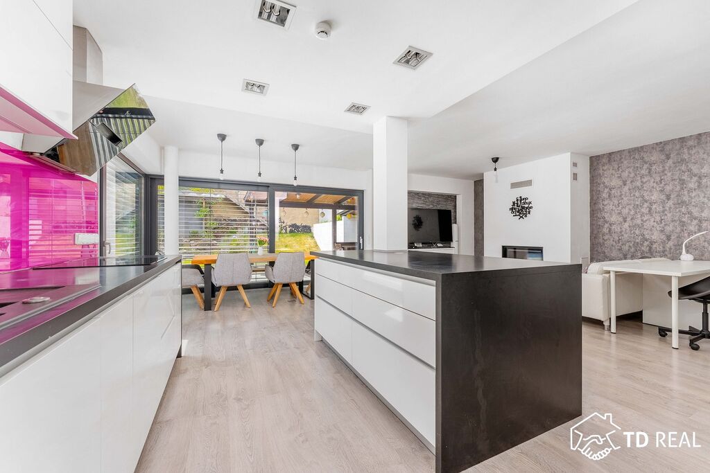 Dům má užitnou plochu 228 m², což poskytuje dostatek prostoru pro celou rodinu. Zahrada je udržovaná a vybavená automatickým zavlažováním, což výrazně usnadňuje její péči, součástí zahrady je bazén se slanou vodou a tepelným čerpadlem. Garáž pro 2 automobily s možností parkování před domem nabízí praktické řešení pro více vozů. V obývacím pokoji se nachází krb, který dodává interiéru příjemnou atmosféru a tepelný komfort. Podlahové vytápění a přípravy na klimatizace v každé obytné místnosti. Alarm poskytuje klid a pocit bezpečí. Možnost instalace podlahy na terasu v 1. patře s výhledem do zahrady. Dům se nachází ve slepé ulici v blízkosti Mariánského údolí a byl navržen architektem Ing. arch. Martinem Karešem, realizován stavební společností ORAK.