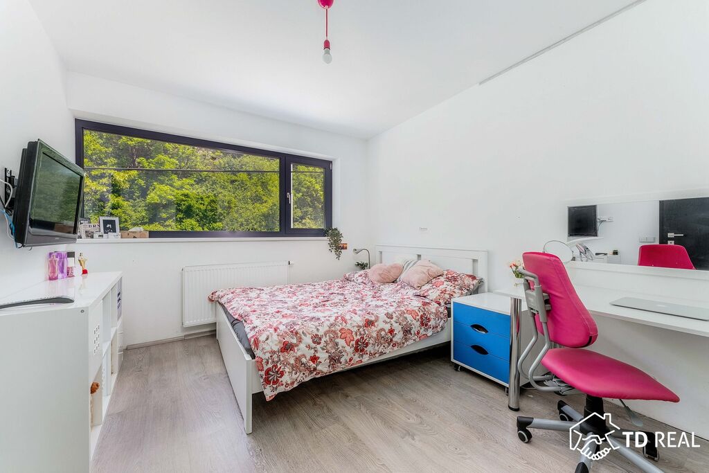 Ložnice (13 m²) je příjemně světlá a nabízí klidné místo pro odpočinek s vlastní šatnou a koupelnou. Dětské pokoje (12m² a 12 m²) oba tyto pokoje mají vlastní šatny a mají společnou koupelnu. Posilovna a bylo myšleno také na návštěvy, které svůj pokoj najdou v tomto patře, prostorná terasa.