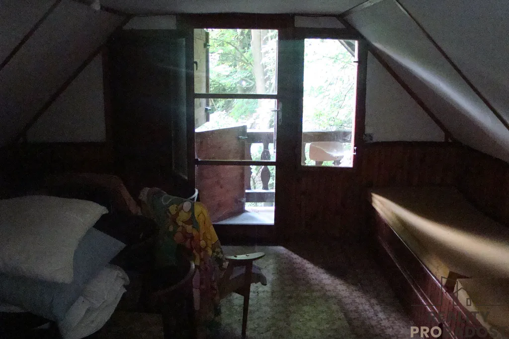 Prodej malebné zděné rekreační chaty o velikosti 2+1, 68m2, obytné plochy v lesnatém svahu nad řekou Berounkou v Újezdě nad Zbečnem u Křivoklát, nedaleko Valentova mlýna (1,5km) cesta podél řeky, nebo lodí(romantika). Budova stojí na vlastním pozemku č. parcely 224, o velikosti 34m2, ev.č. 25, k dispozici i signál na mobilní telefon i WIFI. Chata leží od řeky přibližně 200m , není v záplavovém místě, je v údolí mezi skalami , je zde pouze 5 chat, hloubka vody v řece vedle chaty 2metry ideální pro rybáře, rok stavby 1956. Počet podlaží 2 užitná plocha 68 ,ložnice v patře 34m2 u ložnice terasa 6m s výhledem na řeku , -topení tuhá paliva, pitná voda -studna dělané rozbory přivedená hadicemi až do chaty, - elektrického proud ze solárního panelu , přístupová cesta podle vody ze Zbečna nebo Račic, také možno vlastní lodí u řeky i přívoz k dispozici také -prodej možný s původním zařízením dle dohody ,částečně podsklepená, suché WC prohlídka dle telefonní dohody.