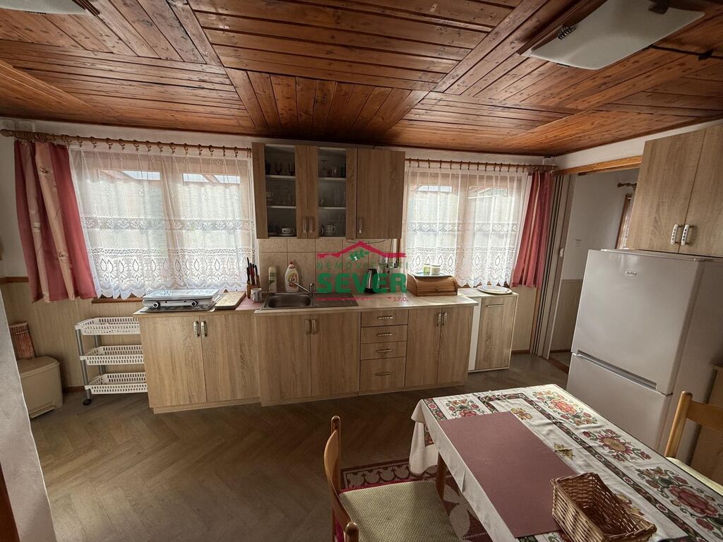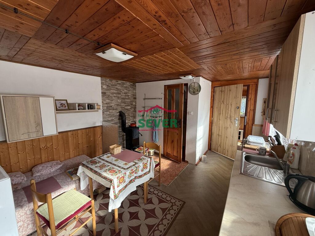 Nemovitosti SEVER vám zprostředkují prodej chaty 2+kk se zahradou, Miřetice u Klášterce nad Ohří, Mariánské údolí, okr. Chomutov. Cihlová chata s kamenným základem, s evidenčním číslem v osobním vlastnictví, se nachází se na pozemku 200 m2. Chata stojí v mírném svahu s výhledem na řeku Ohře 50 m a je celá podsklepená. V Chatě s obytnou plochou 46 m2 je zavedena elektřina 230 V s vlastními hodinami. Je zde prosklená vstupní chodba, terasa s výhledem, koupelna, ložnice, kuchyně spojená s jídelnou a obývacím pokojem. Vytápění je řešeno krbovými kamny, ohřev vody elektrickým bojlerem, je zde sezónní pitná voda a suché WC u vstupu do chaty. Studánka s užitkovou vodou je u pozemku. Chata má plastová okna, je zateplená, má novou fasádu a elektřinu v mědi. Chata je vhodná pro rybáře a milovníky přírody. V případě zájmu zajistíme optimální financování našimi poradci.