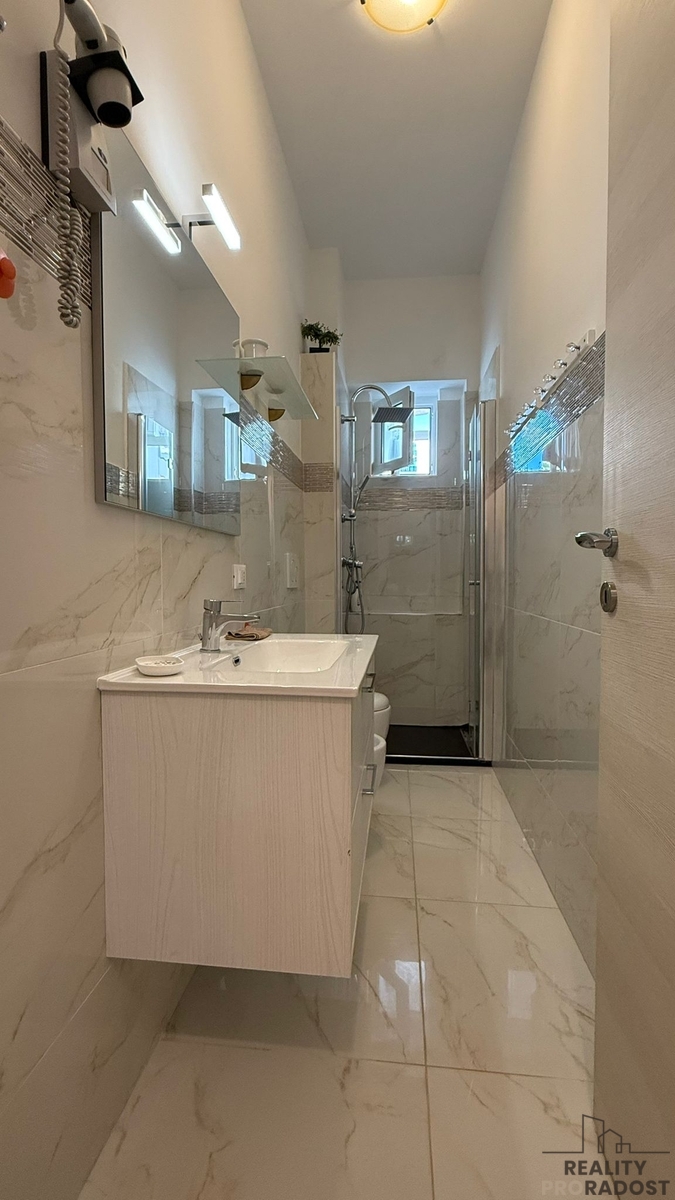 Nemovitost je po kompletní rekonstrukci, připravena k okamžitému nastěhování. Zasklená terasa s možností otevření nabízí příjemný kontakt s venkovním prostředím a soukromí. Moderní vybavení zahrnuje nové podlahy, elektroinstalaci a kvalitní koupelnu, díky čemuž byt splňuje vysoký standard bydlení.