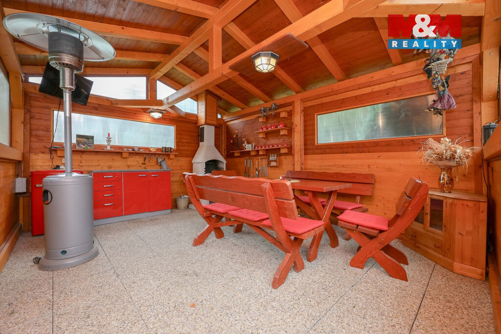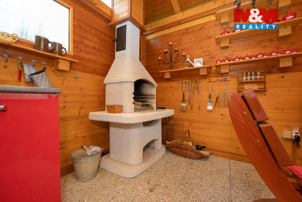 - Krytá pergola s krbem pro venkovní posezení