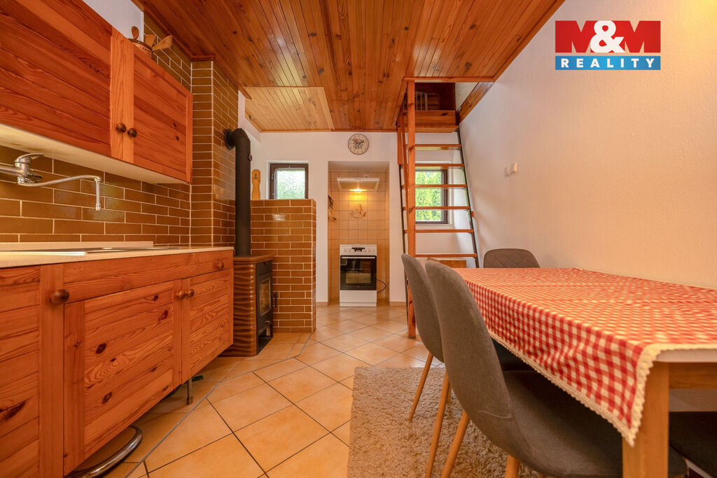 - Koupelna, kuchyně a útulné spaní v podkrovní části