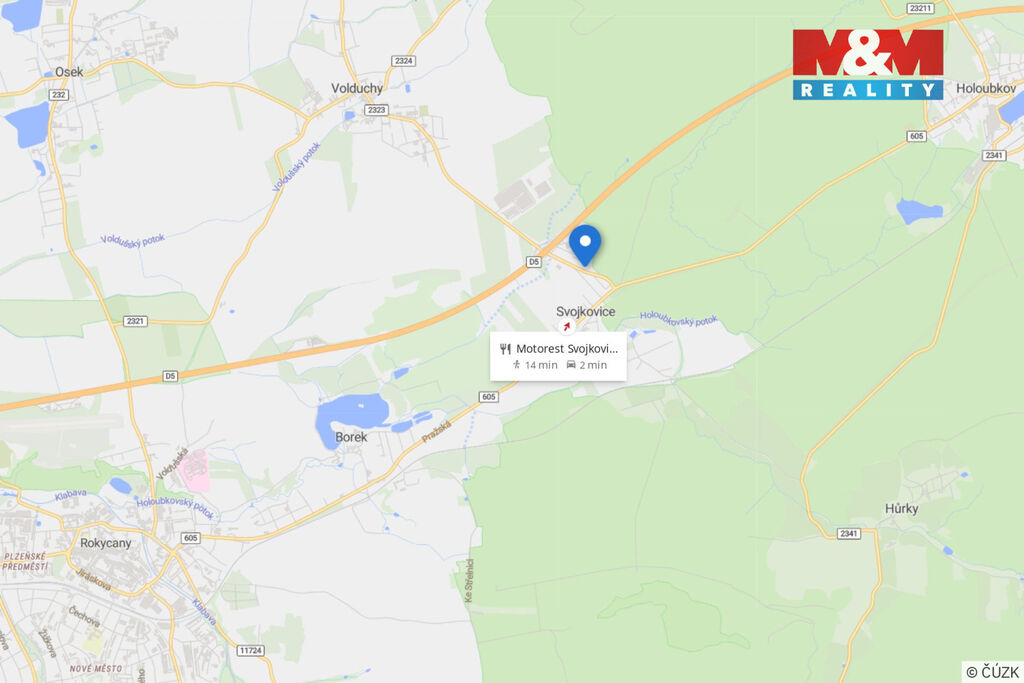 Nabízíme k prodeji rovinatý stavební pozemek o rozloze 797 m² v klidné části obce Svojkovice u Rokycan. Pozemek je ideální pro výstavbu venkovského rodinného domu s možností zastavitelnosti až 40%. Nachází se na okraji obce u lesa. Přístup k pozemku je zajištěn obecní osvětlenou příjezdovou komunikací. Elektřina, plyn a vodovod s optickým kabelem je v dosahu cca 26 metrů od hranice pozemku. Kanalizace v blízkém dosahu není, nutno zřídit ČOV. Pozemek je v dobrém stavu a čeká na své nové majitele, kteří zde mohou realizovat své stavební sny. V blízkosti také nájezd na D5 směr Rozvadov - Praha. Veškerá občanská vybavenost ve 4km vzdálených Rokycanech. Pro více informací a prohlídku neváhejte kontaktovat makléře. S případným financováním rádi zdarma pomůžeme přes naši divizi.