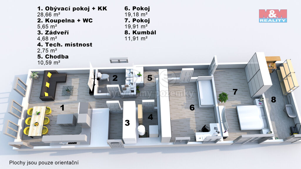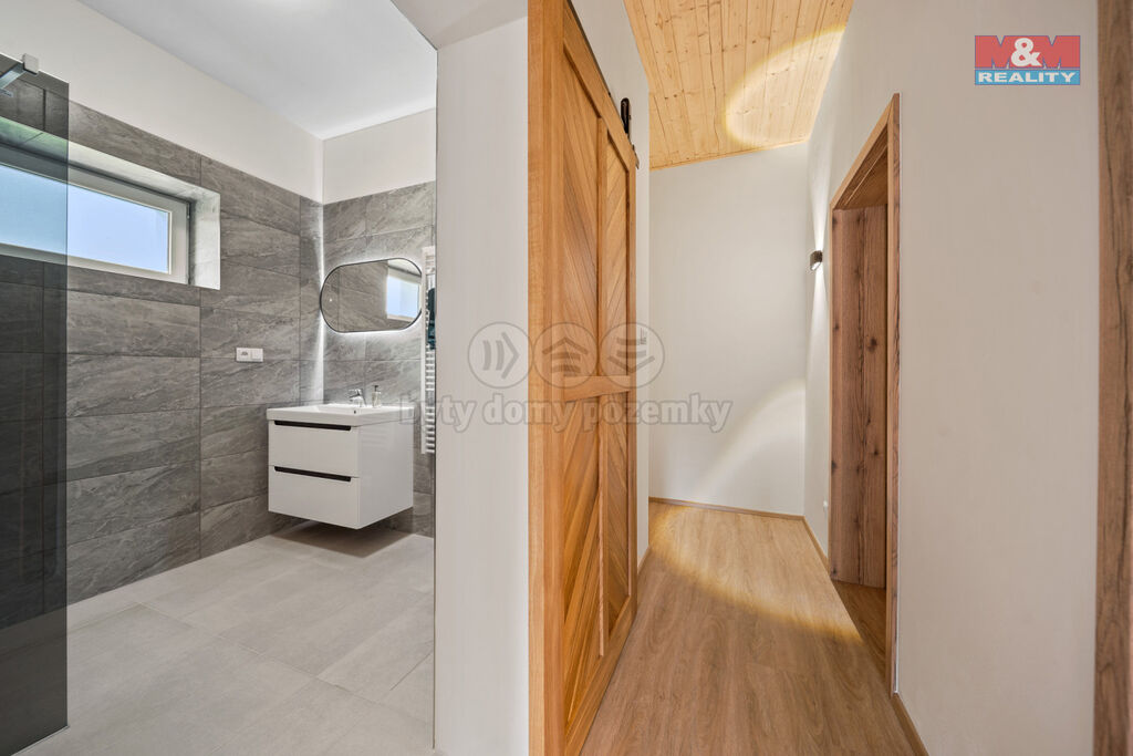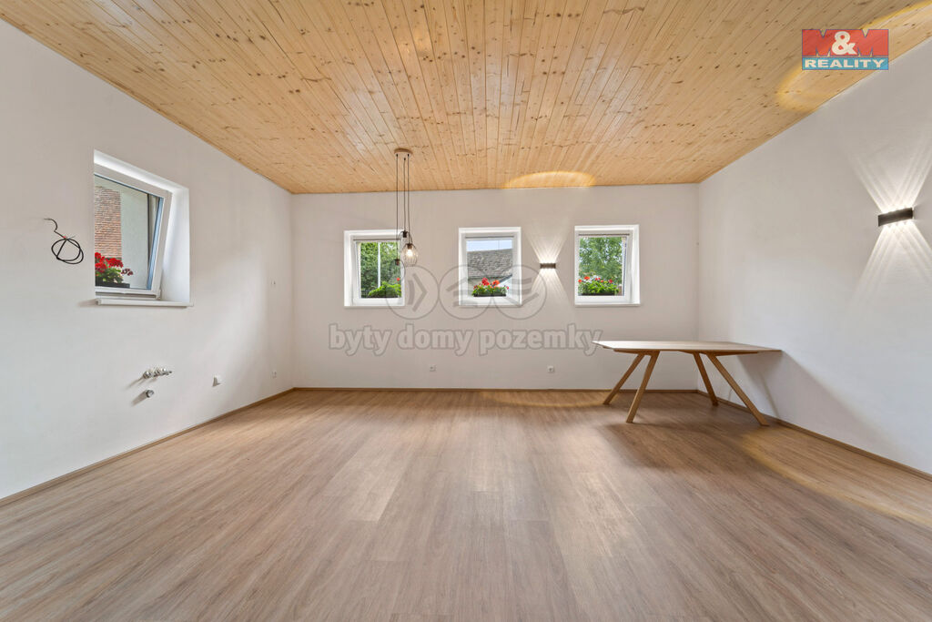 Dispozice: 3+kk, 104 m² + 2. NP připravených k dokončení (rozvody vody, kanalizace, elektřiny, internetu a TV již vyvedeny).