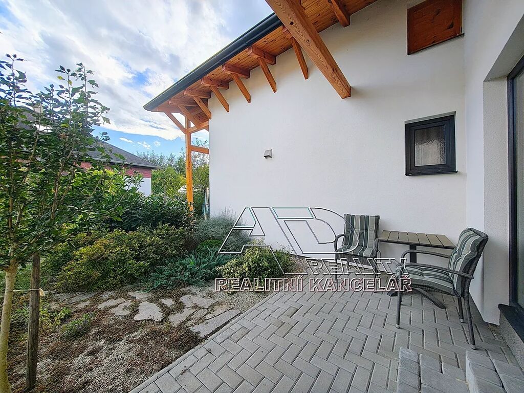 Terasa je přístupná z obytné místnosti přes velké francouzské okno a je orientována na jih do menší komorní vzrostlé (zatravněné) zahrady a je předurčena k relaxaci a odpočinku.