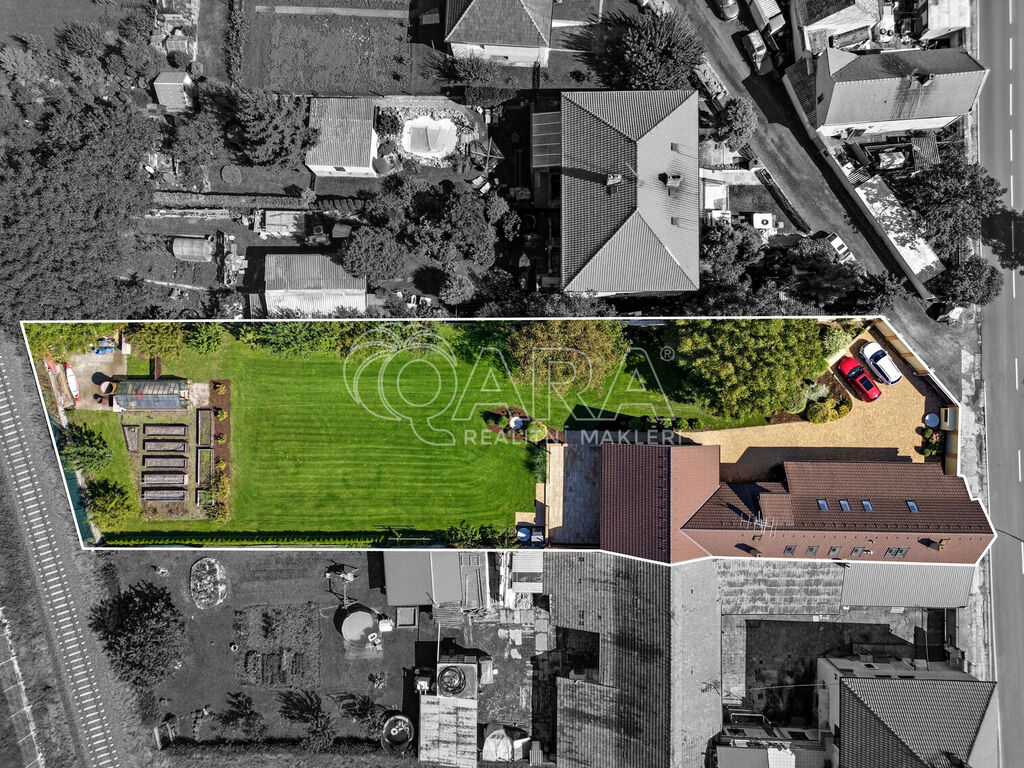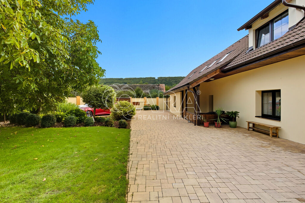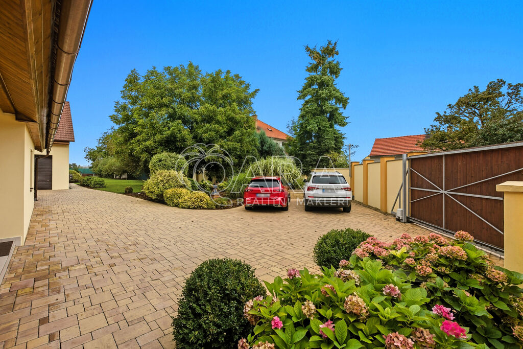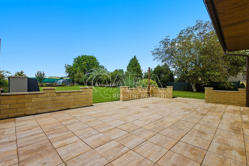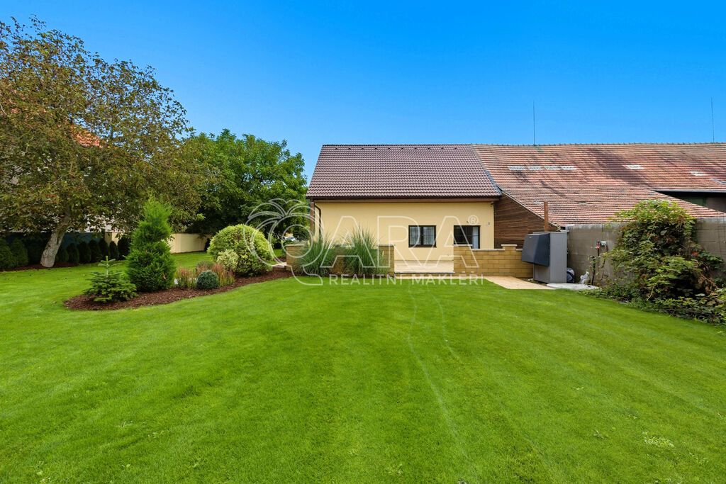 Rodinný dům se nachází na prostorném pozemku o rozloze 707 m² s velkou zahradou 1.145 m², ideální pro venkovní hry, rodinná grilování či relaxaci. Velkorysý prostor v zahradě je skvělý pro děti, které zde mohou bezstarostně trávit volný čas. Zahrada obsahuje retenční nádrž na dešťovou vodu a je opatřena systémem automatického zavlažování. Zahrada má také dvě studny – vrtanou a kopanou. Celkový rozměr obou parcel je 1.852 m². V zadní čísti zahrady je skleník a vyvýšené záhony, které také mají důmyslný systém zavlažování.