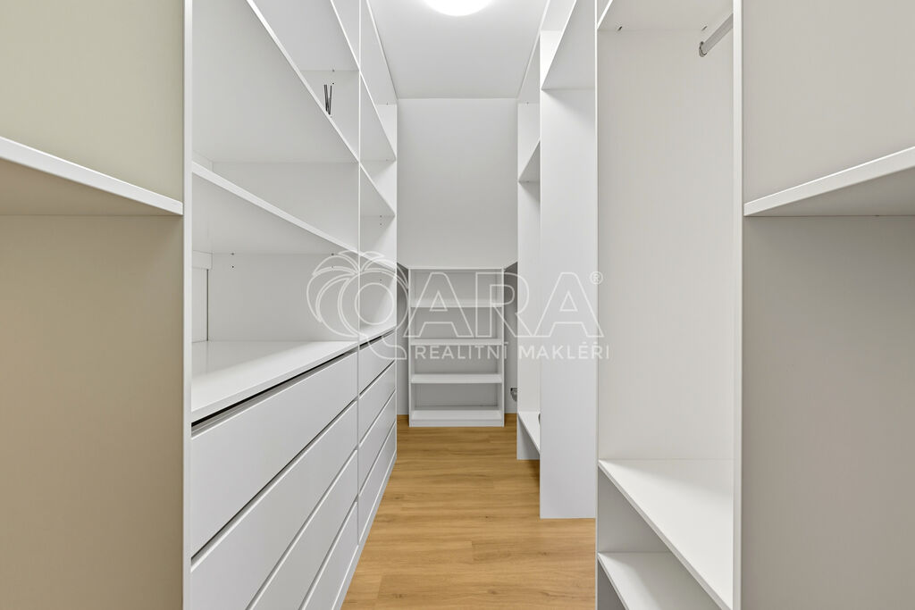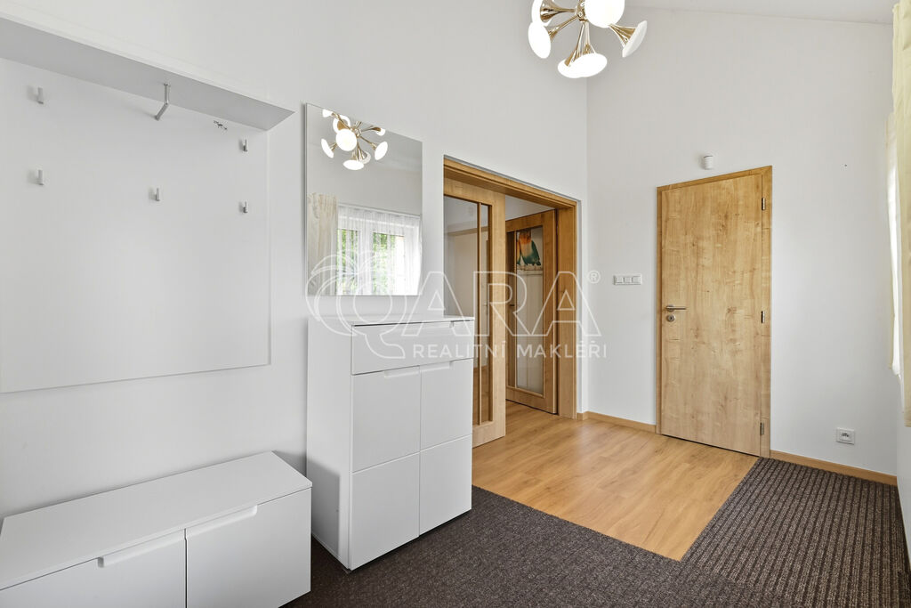 V přízemí se nachází zádveří, předsíň, spíž, pokoj s knihovnou, obývací pokoj, samostatné WC a koupelna, šatna, prostorná kuchyň s jídelnou a plně vybavenou kuchyňskou linkou dělanou na míru, pokoj na domácí práce, technická místnost s prádelnou, chodba, terasa a garáž. V prvním patře je prostorná chodba, ložnice, velkorysá šatna, samostatné WC, koupelna a dva dětské pokoje. Nad prvním patrem je ještě půda, kterou je možné využít jako skladovací prostor. Pod domem je sklep, ve kterém je část technologie a rozvody sítí.