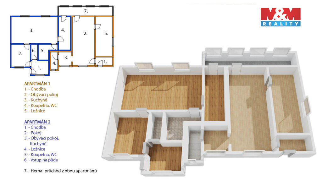 Nabízíme vám tuto výjimečnou investiční nemovitost určenou ke krátkodobým pronájmům s pozemkem 783 m², ležící ve vyhledávané rekreační oblasti Jeseníků. Samostatně stojící dům prošel rekonstrukcí v roce 2021 a je nabízen včetně většiny vybavení. Nemovitost disponuje dvěma samostatnými apartmány. Apartmán 2+1 se 4 lůžky a apartmán 3+kk s manželskou postelí a pokojem se 2 lůžky. Oba apartmány mají vlastní koupelnu s toaletou. Dětská herna je společná pro oba apartmány. Možnost rozšíření o další samostatný apartmán v půdních prostorách, kde jsou přichystané sítě. Na oplocené zahradě se nachází bazén, trampolína, dvě pergoly s grily a dětské hřiště. Ideální investice, neboť leží v blízkosti krásného zámeckého parku, skiareálu Oáza, nebo skiareálu Kouty. Lázně Velké Losiny se nacházejí pouhých 6 km. Chalupu majitel využívá ke krátkodobým pronájmům, tak k vlastní rekreaci. Trať je elektrifikovaná, okna jsou protihluková a bydlení je klidné. Zavolejte si o více informací a o prohlídku.