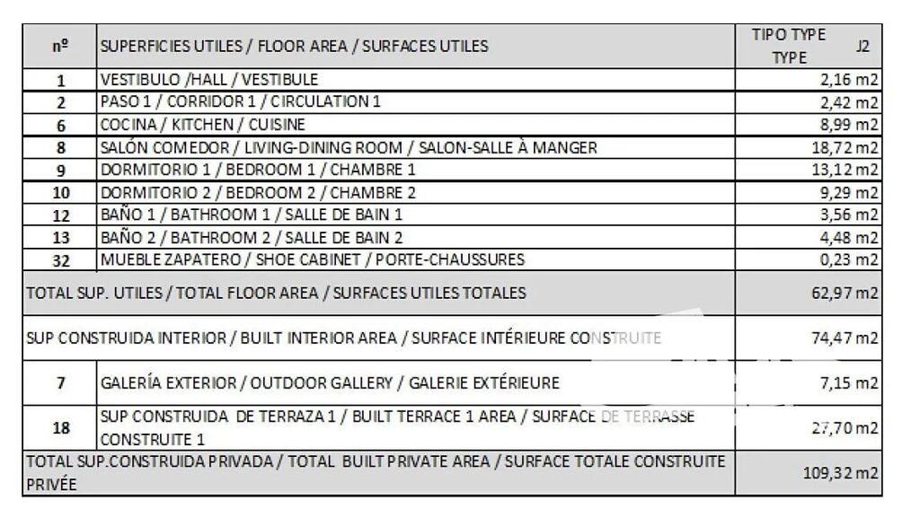 Dispozice apartmánu zahrnuje světlý obývací pokoj s kuchyňským koutem, dvě ložnice, moderní koupelnu, sklep a vlastní parkovací místo. Projekt čítá 72 jednotek rozdělených do dvou bloků, z nichž blok 1 nabízí výhled na moře a Peñón de Ifach, zatímco blok 2 navíc na solné laguny.