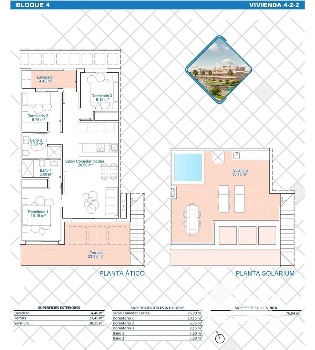 Na jihu španělské Costa Blanca vzniká nový rezidenční projekt, který spojuje moderní architekturu, příjemné prostředí a výjimečnou polohu. V jeho nabídce je prostorný byt 4+kk se dvěma koupelnami a obytnou plochou 76 m². Součástí je také terasa o rozloze 66 m², která poskytuje dostatek prostoru pro odpočinek, stolování i sluneční relax. Moře je vzdáleno jen 2 kilometry, což dělá z této nemovitosti skvělou volbu pro bydlení i rekreaci.