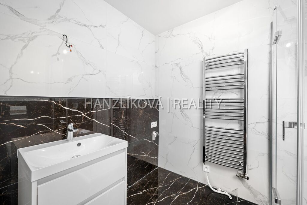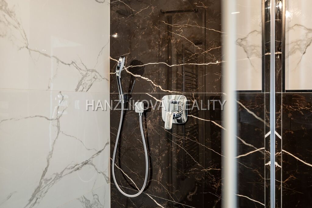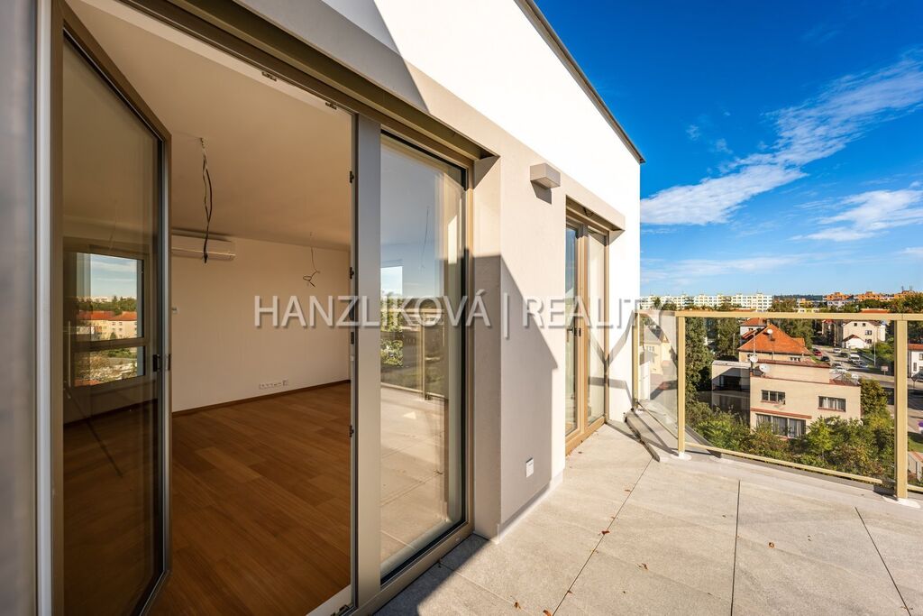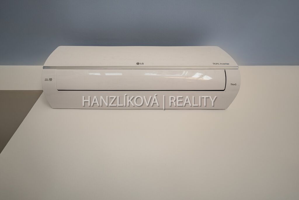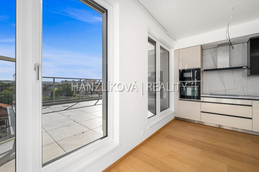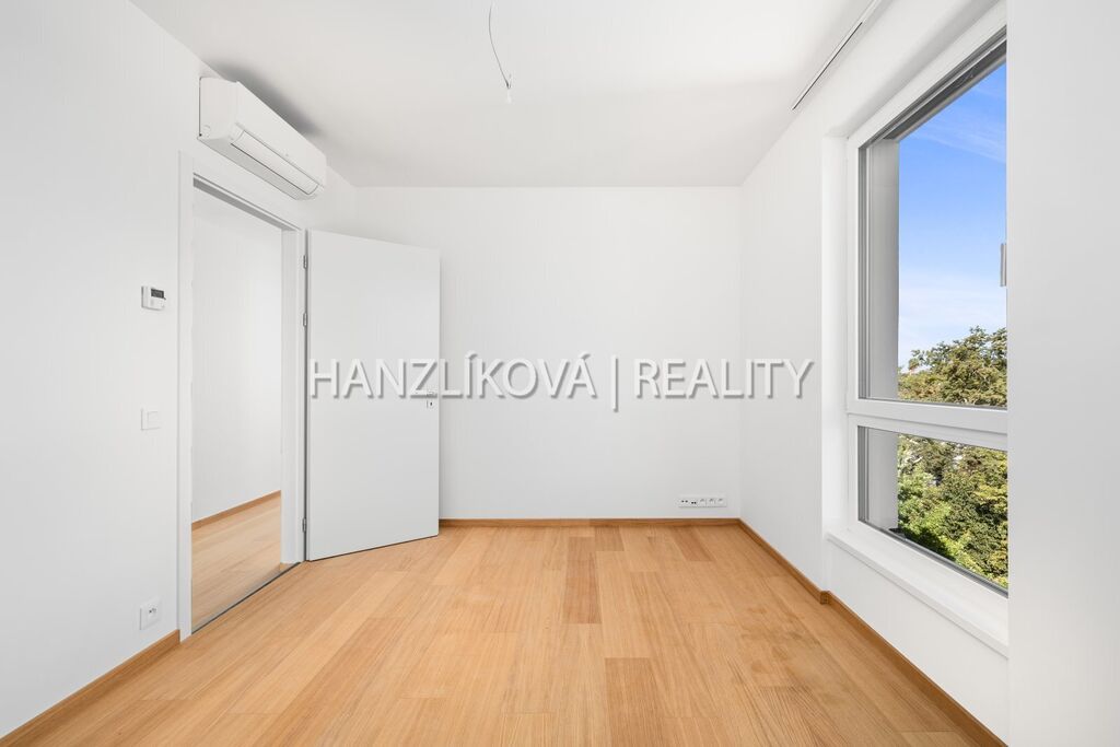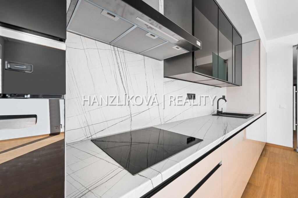 Byt je částečně vybaven – kuchyňská linka na míru od kuchyňského studia Hanák včetně značkových elektrospotřebičů, osvětlení ve všech místnostech, klimatizační jednotky, předsíňová stěna, předokenní venkovní žaluzie.