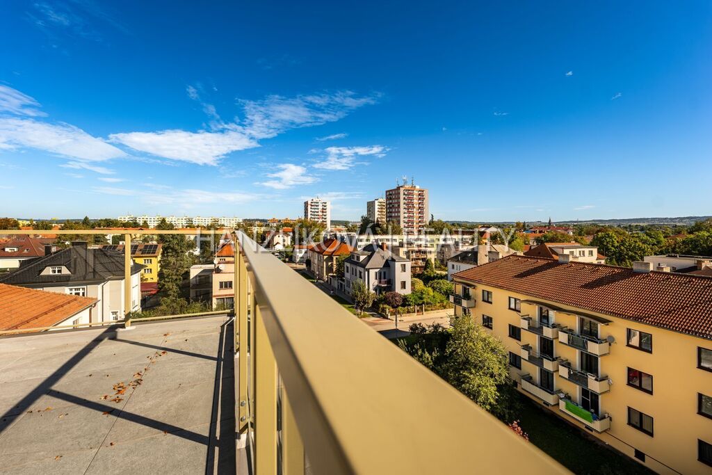 Exkluzivně nabízíme k pronájmu zcela novou bytovou jednotku 3+kk, byt číslo B.31, která se nachází v posledním patře ( 6. NP / 6NP) nově postaveného bytového domu "residence Hálkova". Byt o výměře 65 m2 + terasa 20 m2 je dispozičně řešen jako 3kk, je orientovaný na východ a sever a skládá se z těchto místností : předsíň s vestavnými skříněmi, pokoj, pokoj, koupelna se sprchovým koutem a toaletou, obývací pokoj s kuchyňským koutem a krásná terasa o výměře 20 m2, ze které je výhled téměř na celé město.