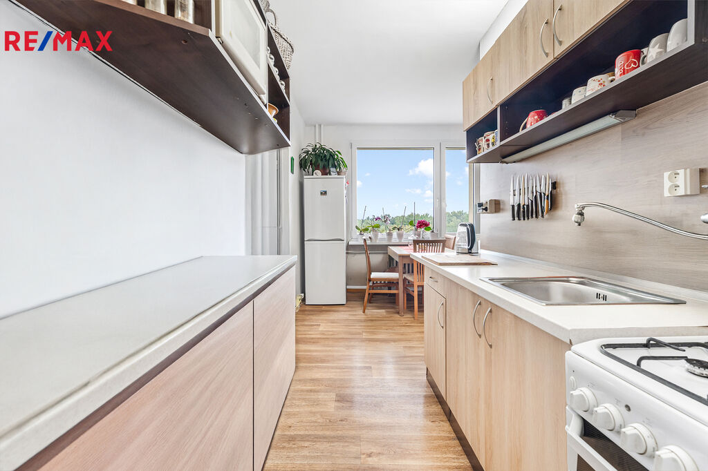 Středový byt o dispozici 2+1 a výměře 62 m² se nachází v 5. nadzemním podlaží revitalizovaného panelového domu v ulici Železničářská, na samém okraji sídliště Slovanka. Ze všech pokojů se otevírá příjemný výhled do zeleně a na okolní krajinu, za domem už začínají louky.