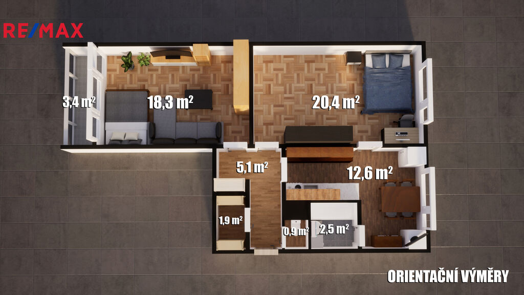 • obývací pokoj 18,3 m² – orientace na jihozápad