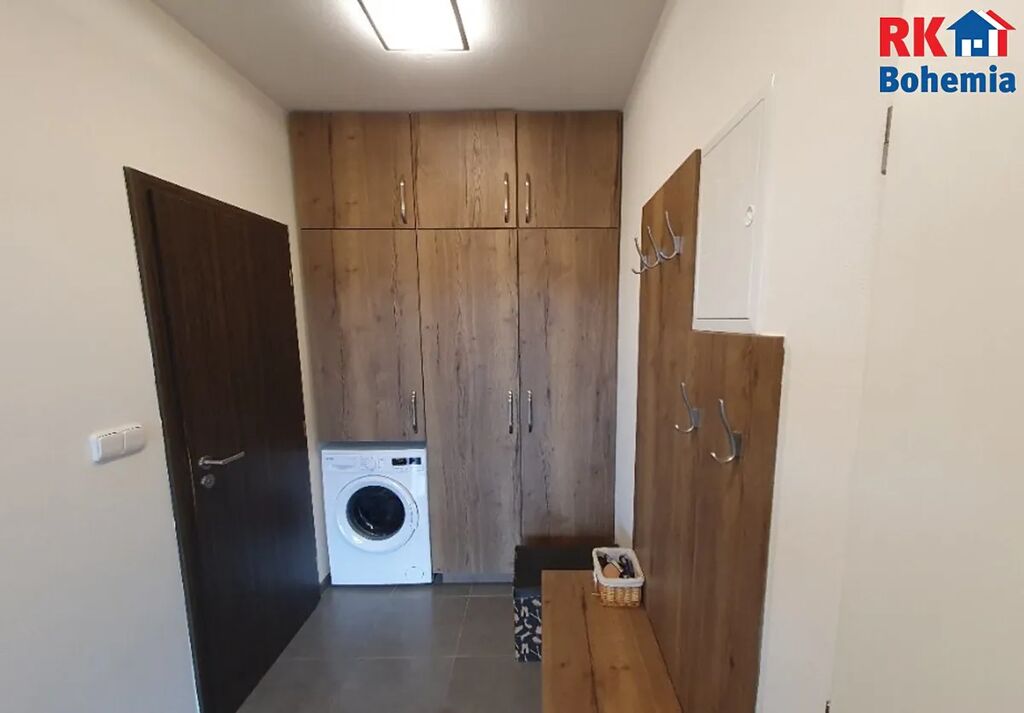 Samozřejmostí je vestavěná skříň v obývací části i praktická úložná skříň s pračkou na chodbě.